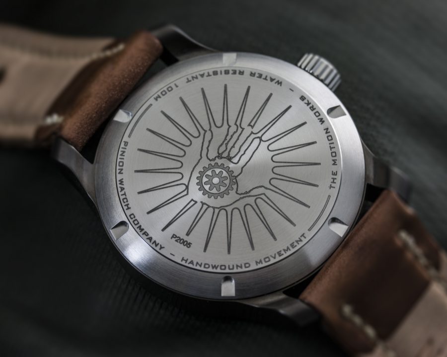 The Pure Collection of watches from Pinion are all hand-wound timepieces that utilise a Swiss movement – namely, the Unitas 6498. This delivers a first rate performance for these watches and powers them impeccably from first minute until last. This mechanical movement was first developed to be used in pocket watches in the 1950s which means that it is bigger than most modern watch movements, but it sits effortlessly in the 42mm case size of the Pure.