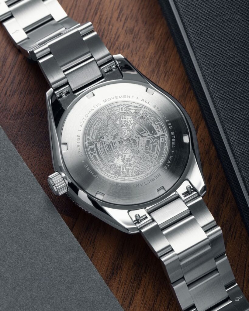 Complementing this is a deep-etched caseback, reinforcing its maritime heritage and connection to the abyss. Protecting the dial is a prominent super-domed sapphire crystal – a fantastic detail that adds a touch of vintage charm while providing exceptional scratch resistance and clarity essential for a dive watch. The robust stainless steel case, measuring 42mm in diameter, 19mm in thickness, and 49.5mm lug-to-lug, offers a substantial and capable presence on the wrist, weighing in at 170g. It’s fitted with a unidirectional ceramic bezel, a modern material choice known for its scratch resistance, providing essential timing functionality for divers.