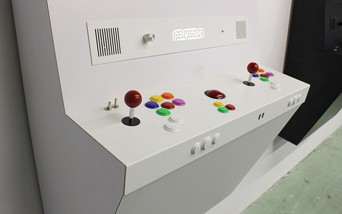 Available in three colours: blue, white, and black, the Polycade Arcade Console is crafted from powder coated steel and laminated plywood. It uses pro, eSports-grade Sanwa joysticks and buttons that are known for their ultra-fast response time and reliability – high scores will be smashed. The front bezel includes two speakers and Polycade’s 70s-style logo, a logo that all of us here at Coolector HQ dig. All of these little touches confirm that The Polycade has been built by people who appreciate both gaming, and design.