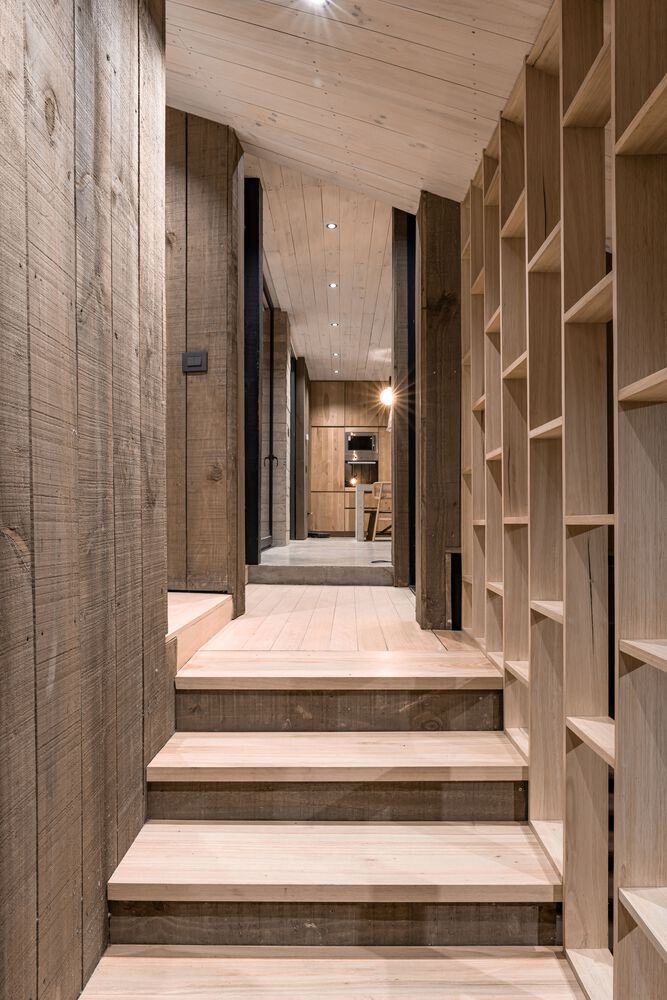 The outdoor spaces haven’t been overlooked; the terraces that make up the access area, the barbecue space, the master bedroom’s private terrace, and the living-dining room’s outdoor extension are also made of impregnated pine decking, providing warmth underfoot and ensuring durability in these exposed areas.