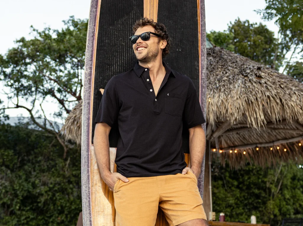 What truly separates this shirt from the endless sea of mediocre polos on the market is the fabric. As the product name boldly suggests, you have to break out the step stools because we are getting into the really good stuff here. The shirt is masterfully crafted in Peru from a bespoke blend of 92% Premium Peruvian Pima cotton and 8% spandex jersey.