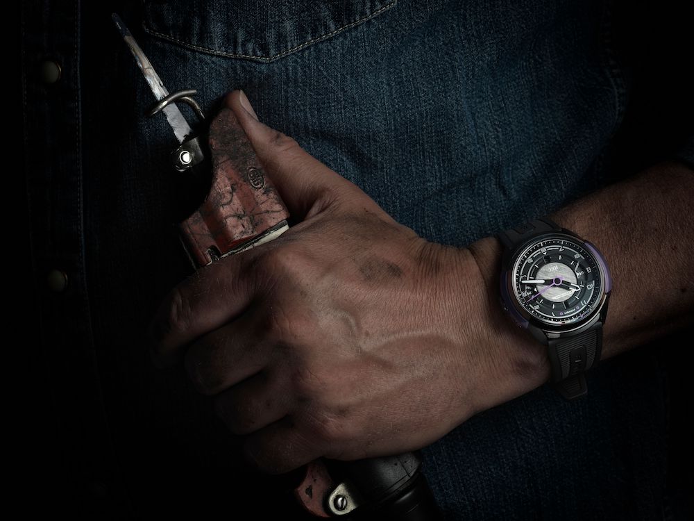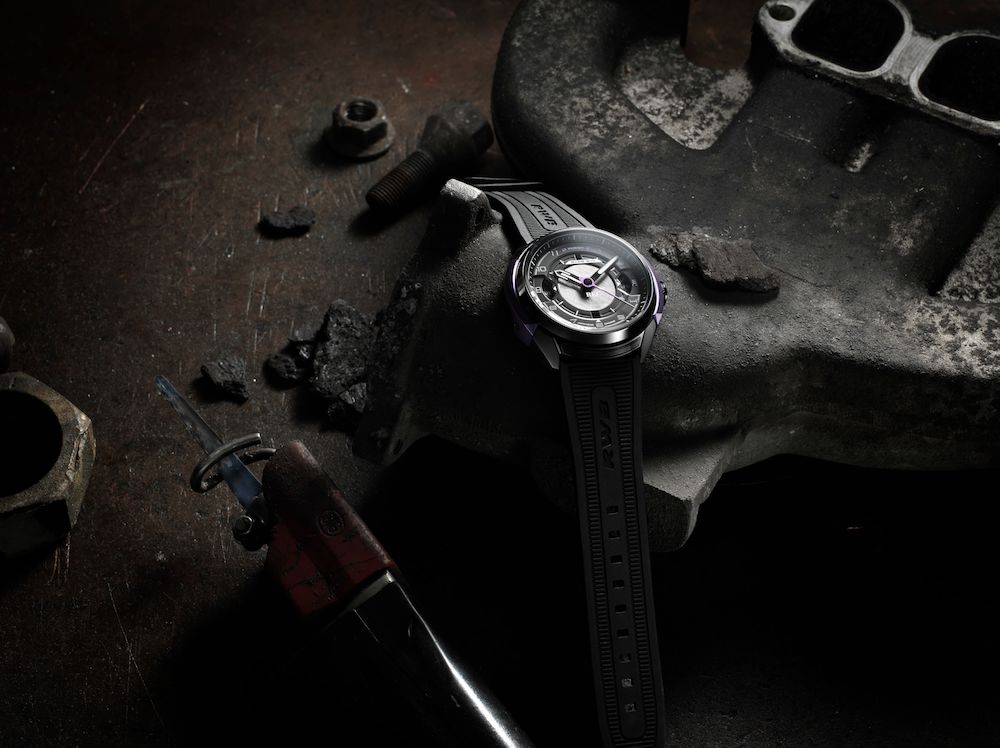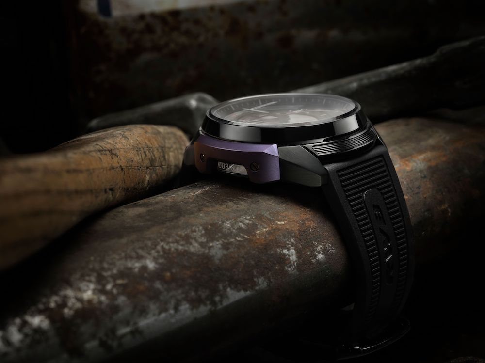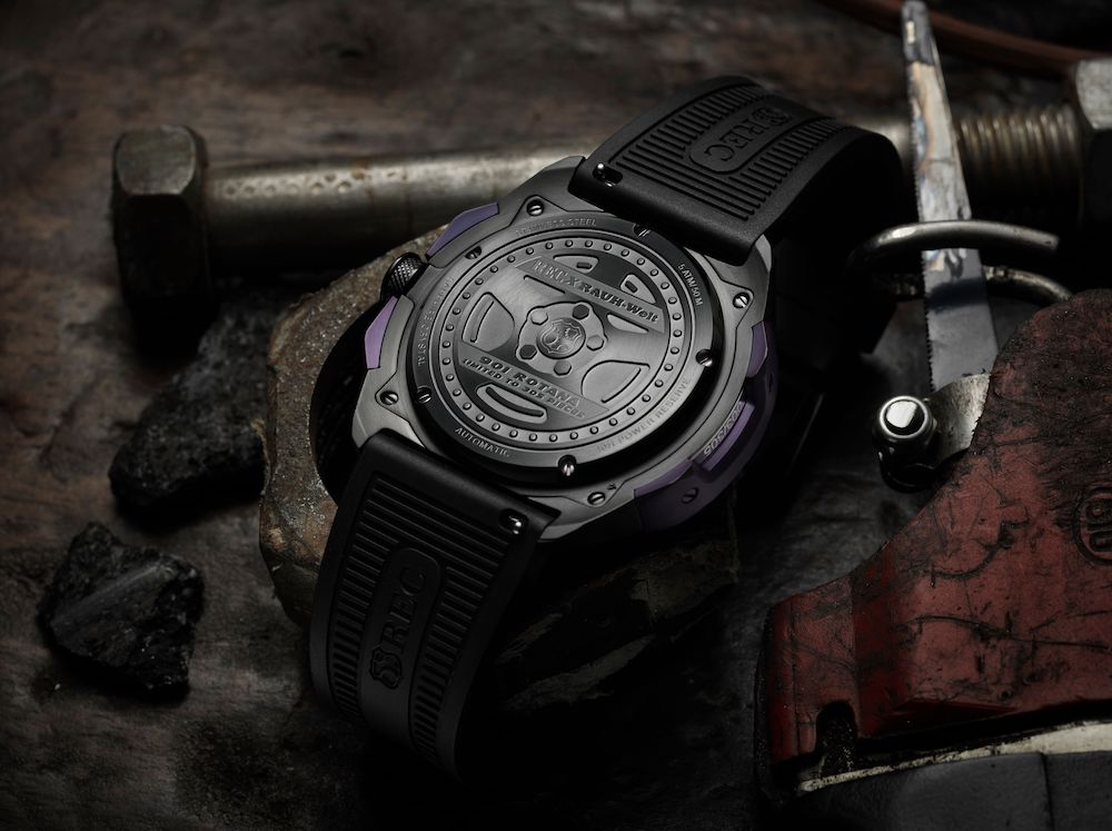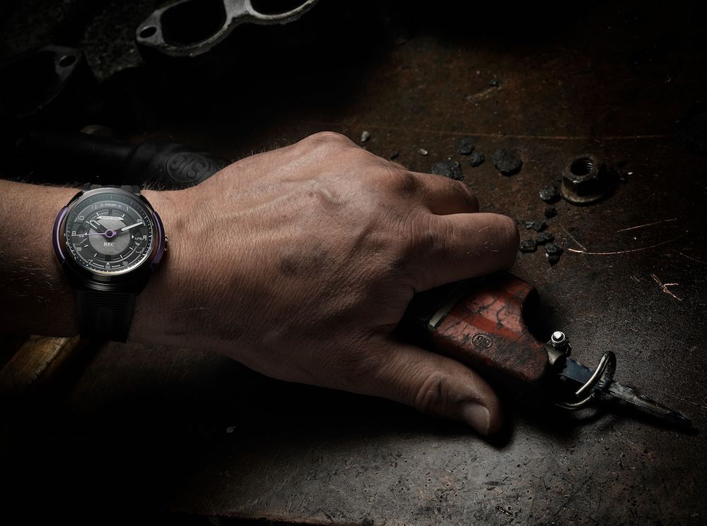 The second offering in this new limited edition from REC is the 901 RWB Rotana (£1469) which uses metal from Akira Nakai’s personal RWB Porsche 911: Rotana – which is an absolutely outrageous, bordering on the blasphemous, purple turbo car. The purple Rotana is Nakai-san’s vision taken to a whole new level. The idea for this evolutionary refinement on his first project suddenly came to fruition in his mind during a visit to the United Arab Emirates; when a purple Lamborghini blasted past him as he was walking next to buildings owned by the Rotana group. This is what served as the inspiration for this visually vibrant timepiece from REC Watches.