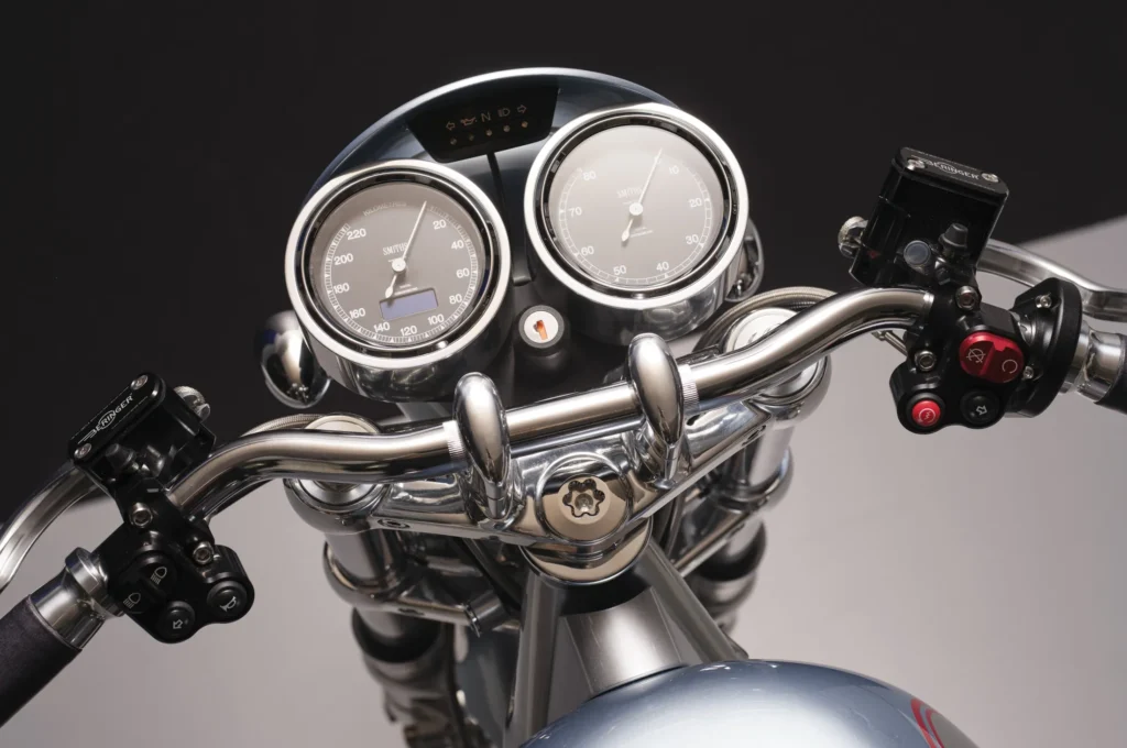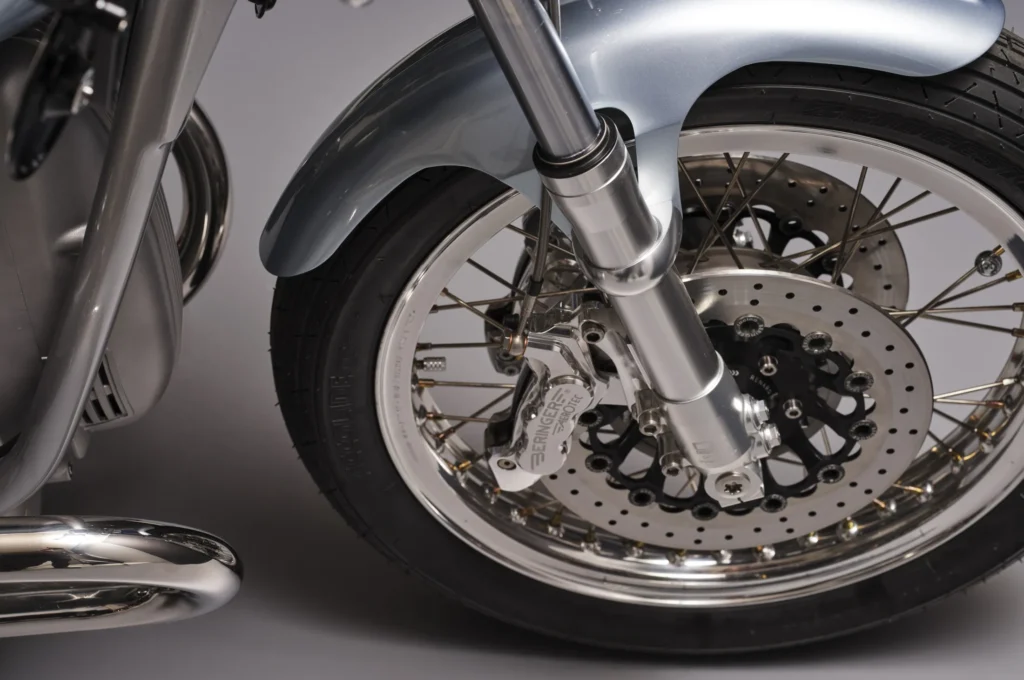 Experience seamless and exhilarating rides with the 1000cc Renard Custom Engine. Unleash its potential and feel the surge of power from the lowest revs. With an impressive output of approximately 80 HP and 95Nm torque, this engine guarantees a thrilling and nimble journey. By replacing the original BMW parts with Ceriani type fork and rear shocks, the team at Renard take a step further and equips the bike with a full 3-way adjustable classic racing spec suspension that ensures an unbeatable performance out on the open road. After a timeless motorbike for two-wheeled adventures in 2024? You may have just found the ideal candidate.