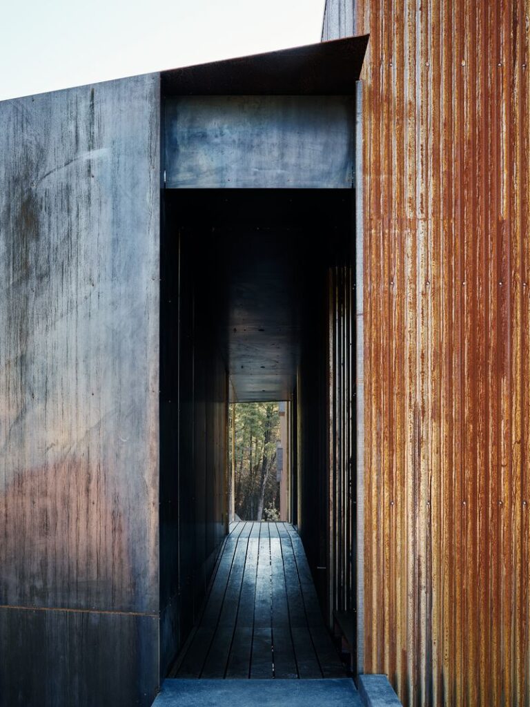 The brief was uncompromising: they needed a durable, low-maintenance, long-lifecycle house that was explicitly wildfire-resilient. Faulkner Architects delivered spectacularly. To protect the home from future infernos, they wrapped the exterior in a robust, fire-resistive Corten steel shell.