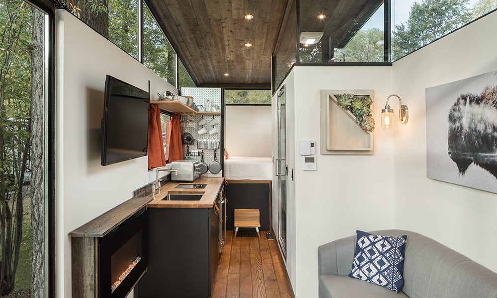 There are all sorts of clever little design features which are a welcome addition to the finished product of this RoadHaus Wedge and the one bed, one bath space is a great solution to many different living requirements. With an almost entirely glass frontage, it lends itself to being located someone picturesque to really take in the views and windows are placed to optimise the light on all sides of the structure.