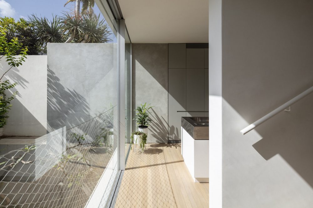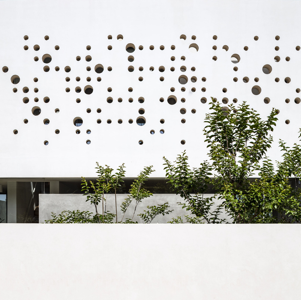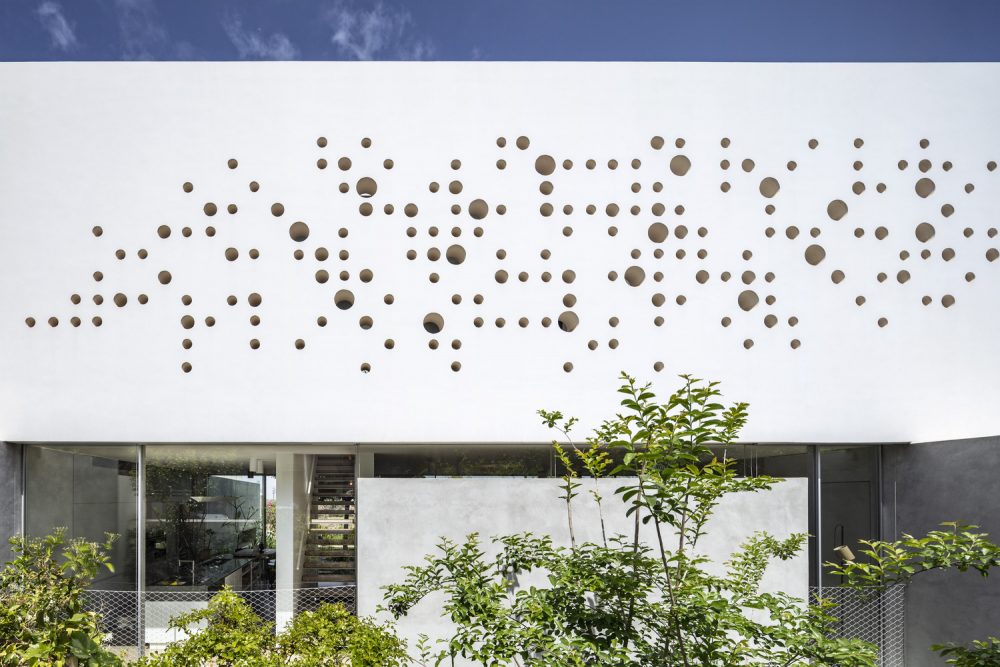 Needless to say, the stand out design detail of the Round Edge House is the so-called Power Wall on the exterior of the property which is a laced concrete façade that filters the city apposed the open view. The architects wanted the punctured wall to work as a double function curtain. It does this by letting in some of the neighbourhood’s essence and diffuses the landscape back into the street behind it.
