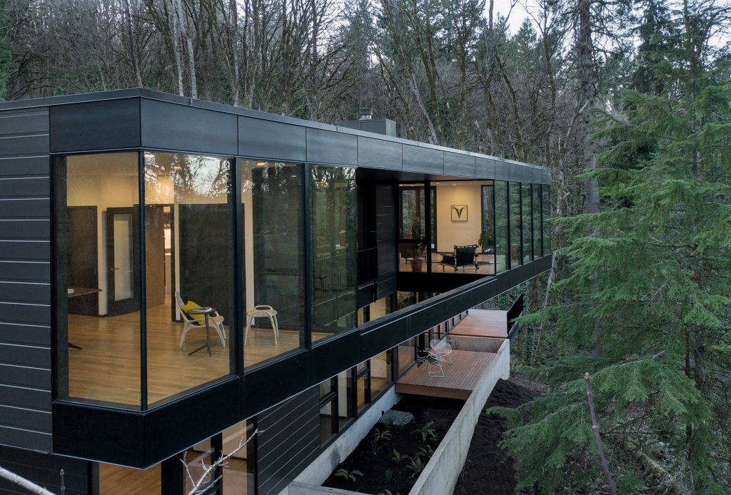 Portland is one of America’s most verdant cities and boasts some amazing forest and woodland. Considering the difficulties often associated with building in woodland, you perhaps wouldn’t expect to see a property as ambitious and eye-catching as Royal House in Portland’s Forest Park which is surprisingly close to downtown but feels like you’re in the middle of the wilderness.