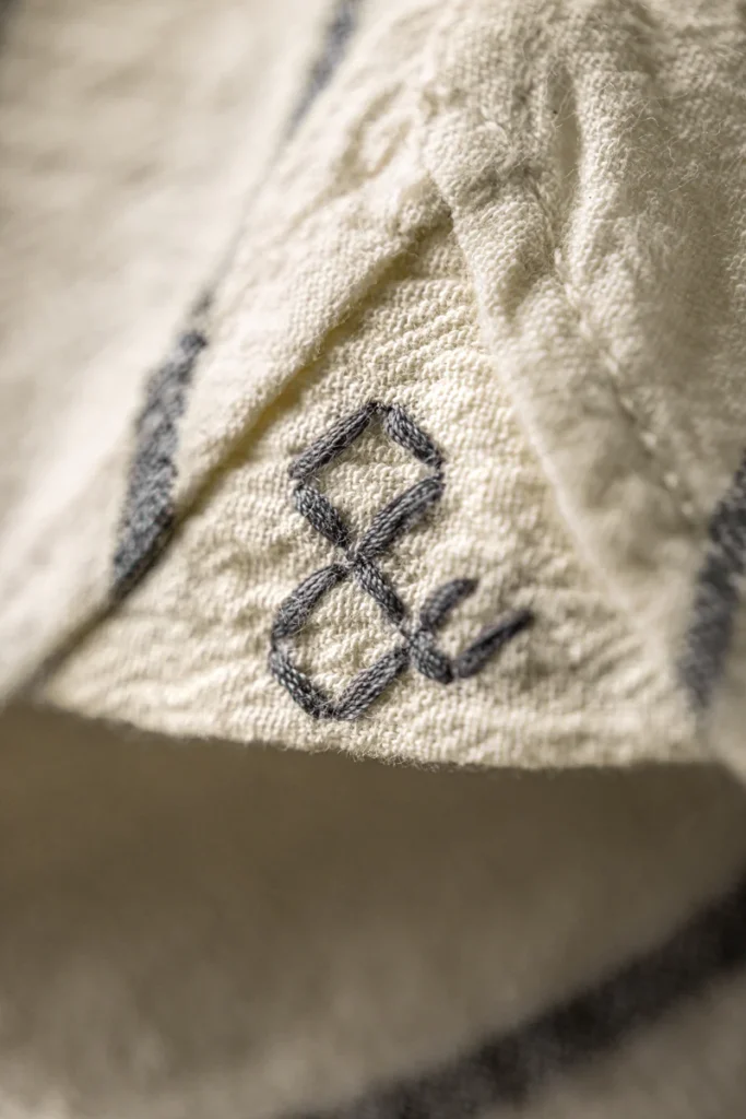 What we absolutely love about this specific release is the inherent individuality of the production process. Because of how the garment-washed fabric is cut and sewn, the stripe placement naturally shifts from piece to piece.