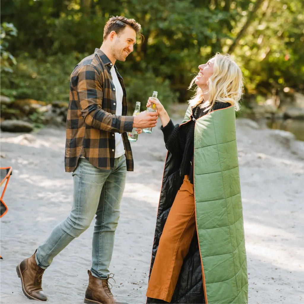 With a Cape Clip® for hands-free use and an ultra-packable NanoLoft® insulation that mimics down feathers, you’ll have plush, robust warmth with you every step of the way and wherever your adventures end up taking you. Don’t worry about the sparks. Rumpl’s 100% post-consumer recycled proprietary NanoLoft® insulation is made up of tiny circular clusters of fibre that mimic the properties of down clusters for an unparalleled warming performance.
