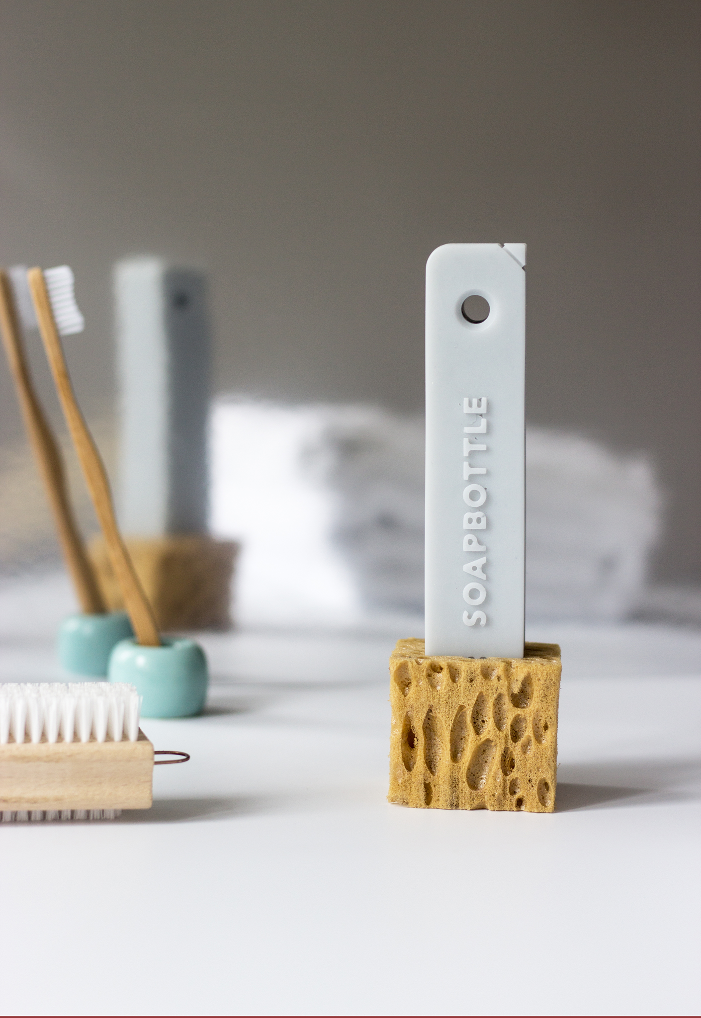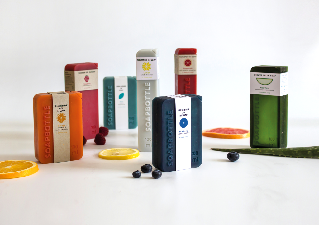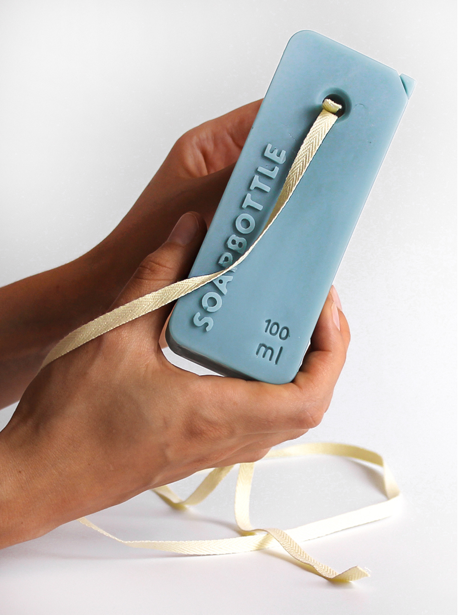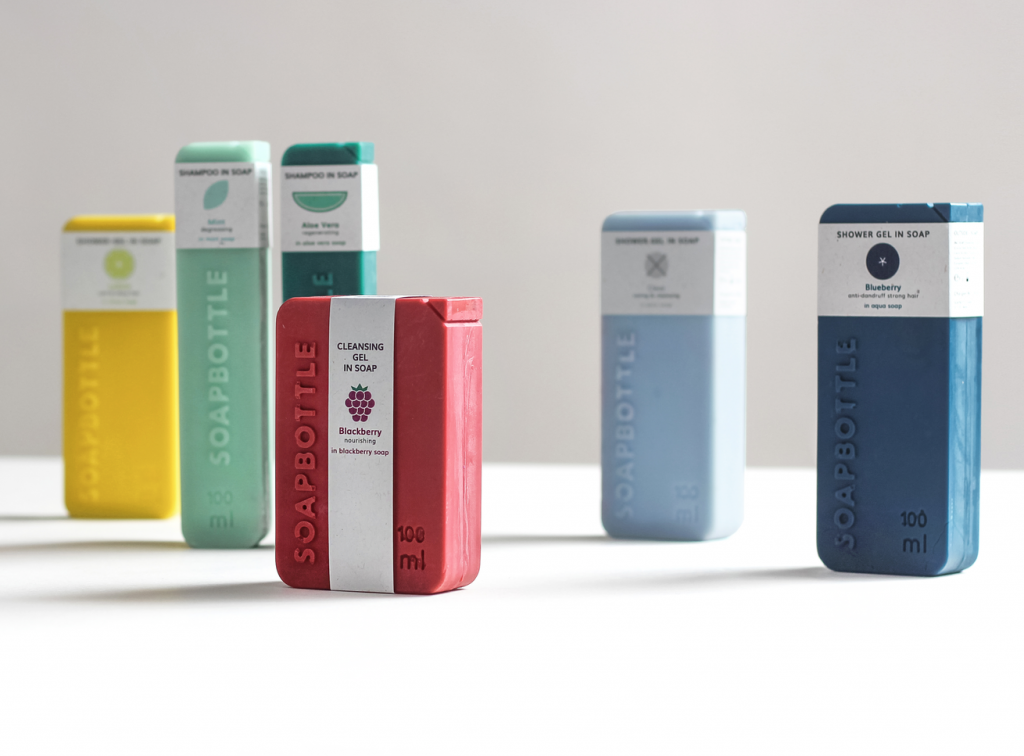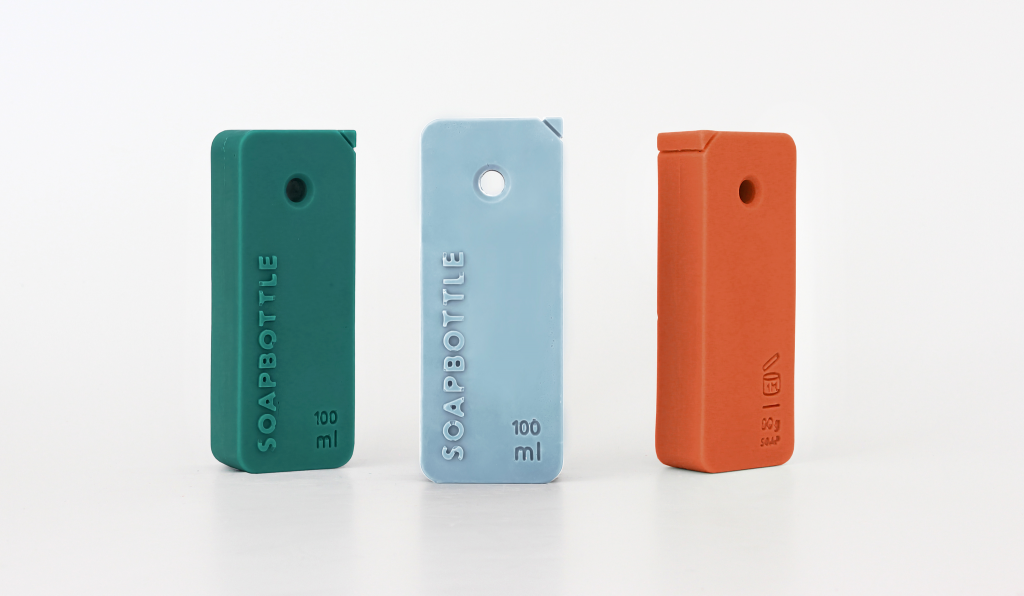 By turning the product into packaging, they have transformed the concept of packaging-free cosmetics to come up with a sustainable solution for liquid care products. Unlike any other packaging, the S O A P B O T T L E is made from a soap formula that can be entirely used like hand soap and “washes away” together with the wastewater over time.