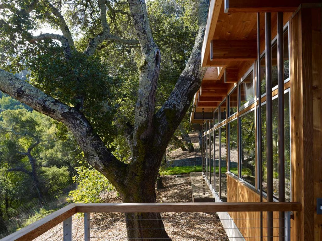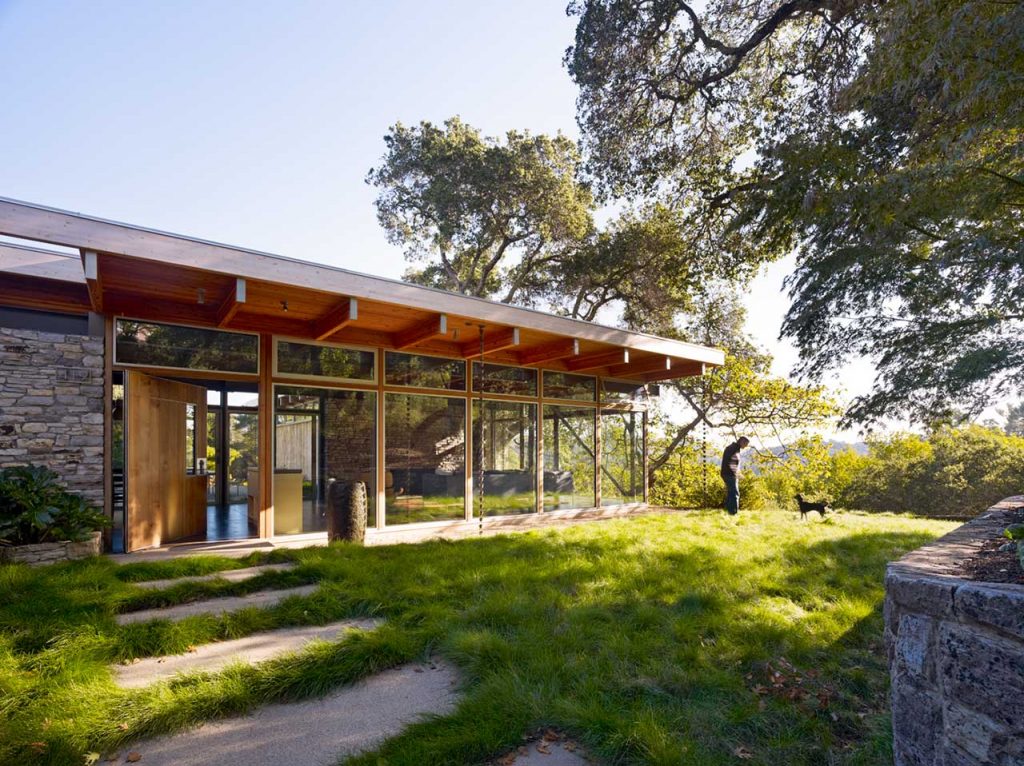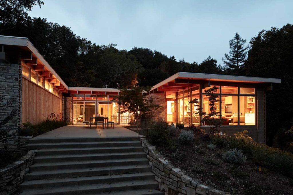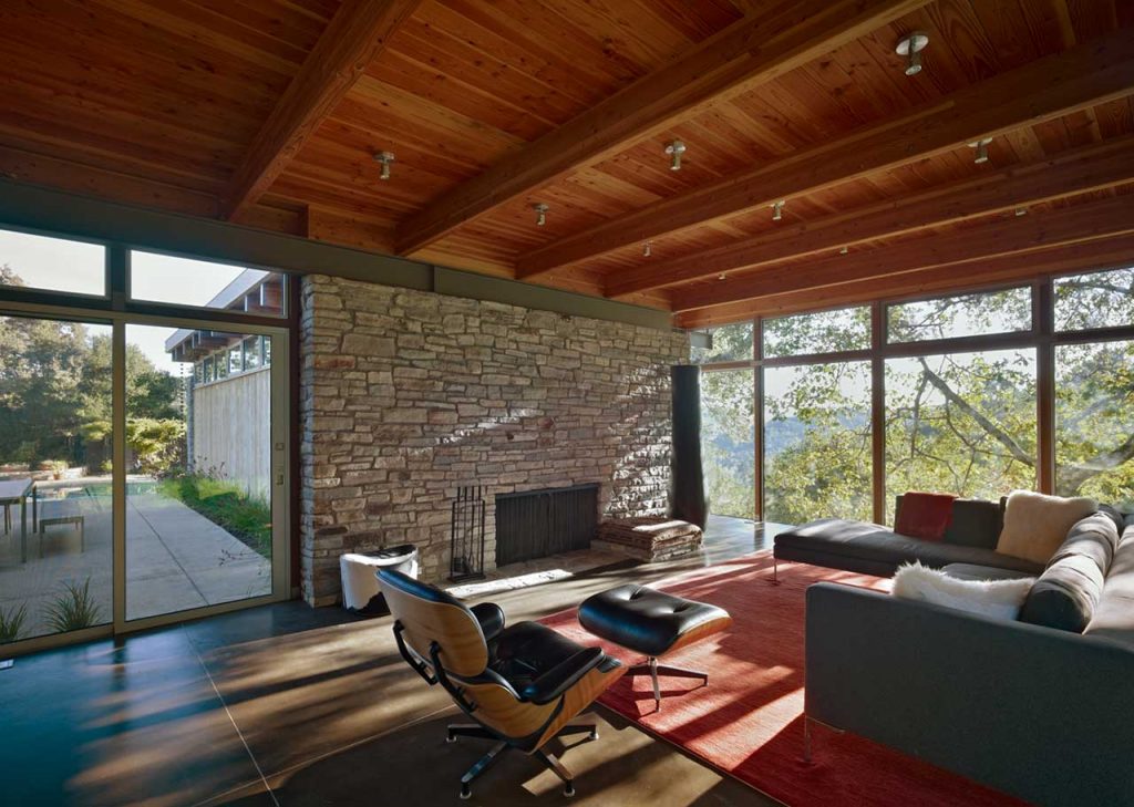 The architects behind San Anselmo Residence kept the structure’s system of ashlar masonry walls and added new masonry elements that tie into the original walls and do a first class job of anchoring the newly added section to the home. Floor-to-ceiling, insulated glass panels visually enhance the interior to the outdoors living while framing the breathtaking views across the San Francisco Bay area.