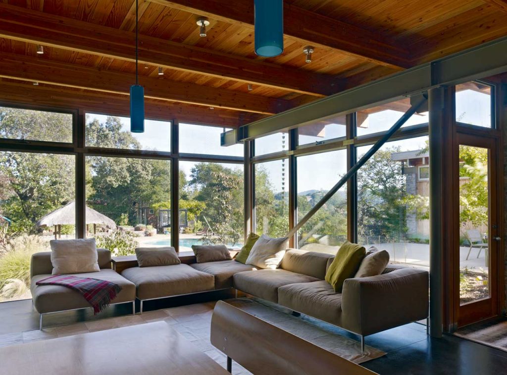 Built and updated to be a low energy green home, San Anselmo Residence boasts photo-voltaic panels, solar domestic/hydronic heating, solar pool heating, gray water system, and recycled blue jean insulation. All of these elements combine to make this one of the most eco-friendly homes in the neighbourhood.