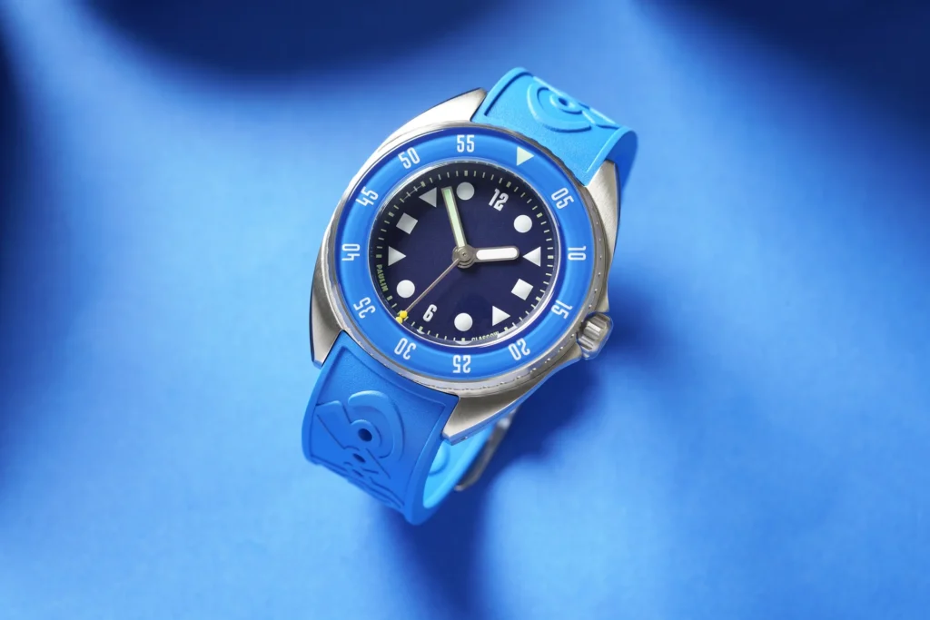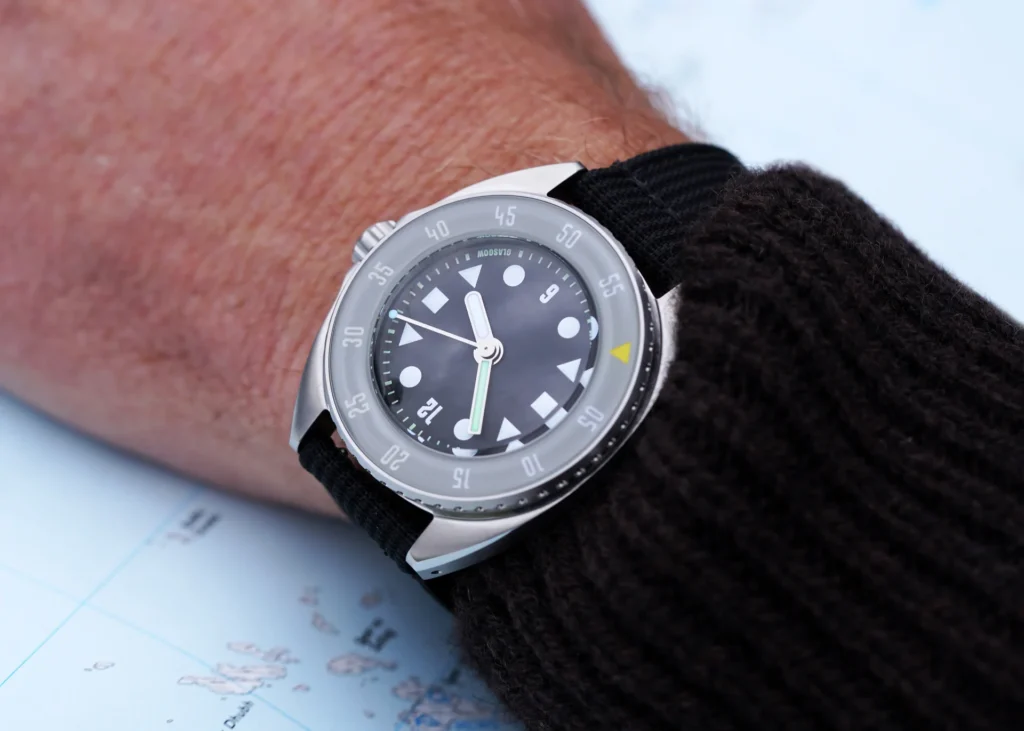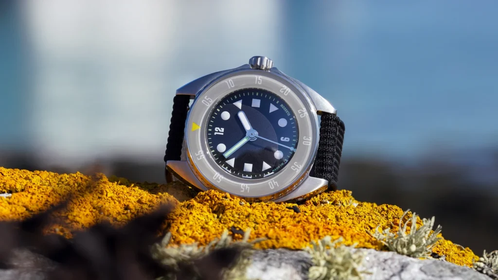 Named after the Scots Gaelic word for ‘of the sea’, the Mara is a dive watch with design at its core. The first thing that grabs you is the dial. It’s a masterclass in graphic clarity, featuring Paulin’s bespoke ‘Wim’ typeface for the numerals—a signature touch that immediately sets it apart from the sea of generic dive watch fonts.
