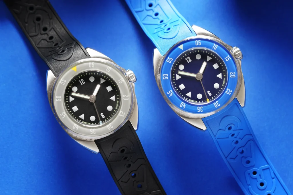 Paulin completes the package with two excellent strap choices that underscore the watch’s dual personality. You get a custom-branded, injection-moulded rubber strap that’s perfect for aquatic adventures, and a stylish fabric strap made from recycled fishing nets. In a final touch of luxury, this eco-conscious strap is lined with Italian Alcantara faux suede for supreme comfort on the wrist. It’s this blend of thoughtful details, robust engineering, and unique design that makes the Mara so compelling.