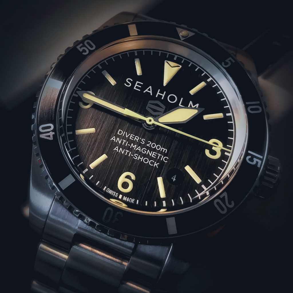 Overflowing with top notch features, it’s not hard to see why the Offshore Dive Watch is one of Seaholm’s most popular releases to date. Some of the stand out features of this high quality timepiece include a visco-elastic shock mount protects against the most rigorous activities, a stainless steel case with screw down crown and engraved caseback, C3 Super-LumNova® lume, 200m water resistance and each watch has two bands included: a stainless steel bracelet with diver extension and a nylon strap.