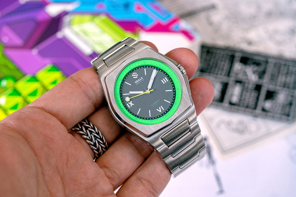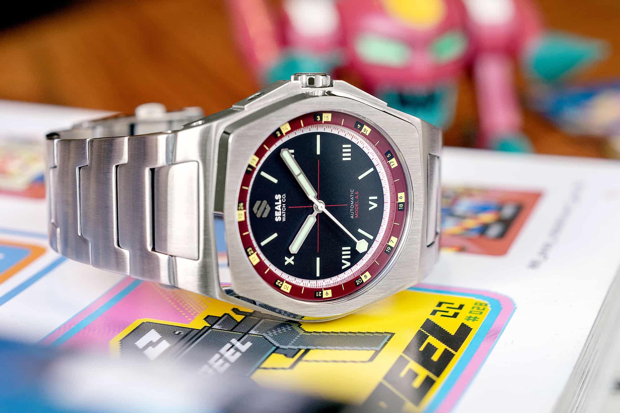 There is almost a playful aesthetic to the design of the Model A.5 Automatic Watch from Seals and an integrated bracelet style, with a Royal Oak-ish case shape that immediately draws the eye and shows of the fun side of this uber-stylish timepiece. The design collaboration between Seals Watch Co and Matt Smith-Johnson takes its inspiration from colourful 1970’s watches, and Matt’s unique sense of style and design and the end result is a vibrant and contemporary watch that we’re loving here at The Coolector.