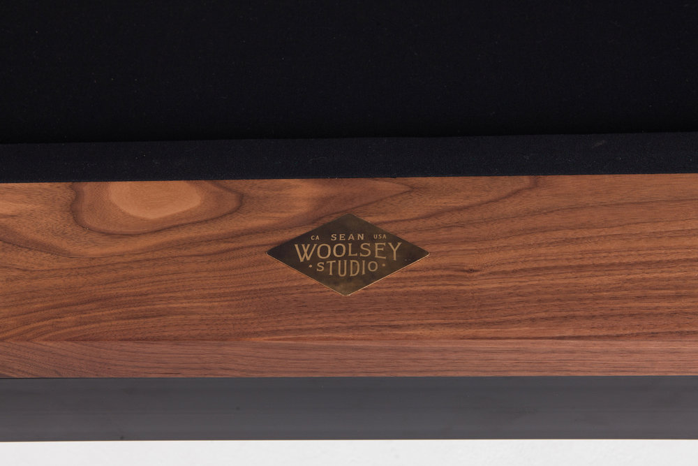 The Sean Woolsey Pool Table has handmade inset drop pockets made from rich black leather to elegant house the balls after you’ve made that killer shot. You’ll also find hand blackened brass rail protectors, brought to life by the Woolsey logo, which harmonises fantastically well with the walnut rails. Black epoxy rail sights are embedded into the walnut which is ideally suited to perfectly aligning your shots.