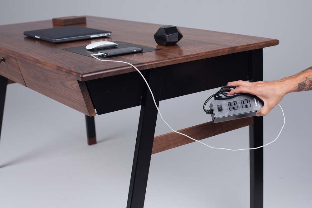 As it’s a workspace, chances are you’re going to have a lot of your tech residing on the Agent Desk so you’ll be pleased to hear it comes with a magnetic power block (two power, four USB) which can easily be attached anywhere on the steel frame of the desk, and moved at the drop of a hat depending on when and where you need power supply. We love the stealthy aesthetic of the Agent Desk coupled with its technological agreeability and this makes it the prime candidate for any creative on the hunt for a high end new workspace.