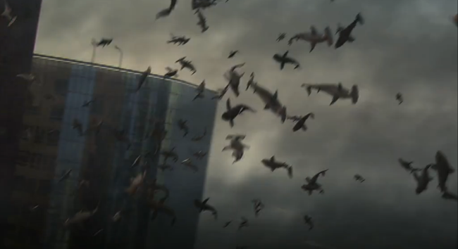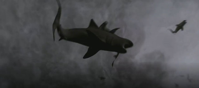 The story revolves around the very likely happenstance of a load of great white sharks getting swept up in a tornado and then deposited in a flood-hit Los Angeles and carnage, inevitably, ensues. Now, I don’t regularly tune in to the National Geographic channel but I assume that the Sharknado phenomenon happens two to three times a year, right?
