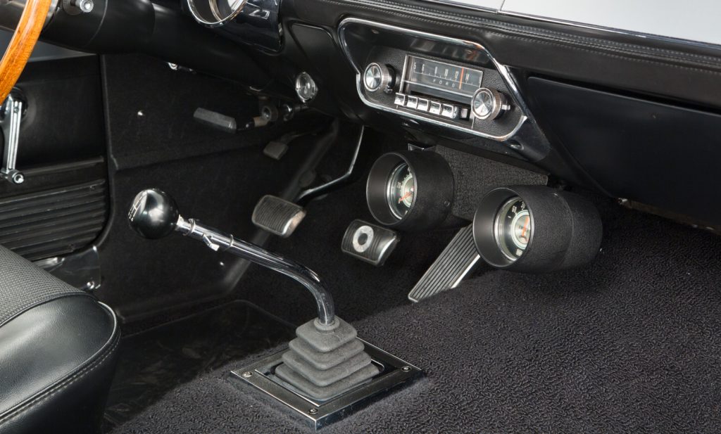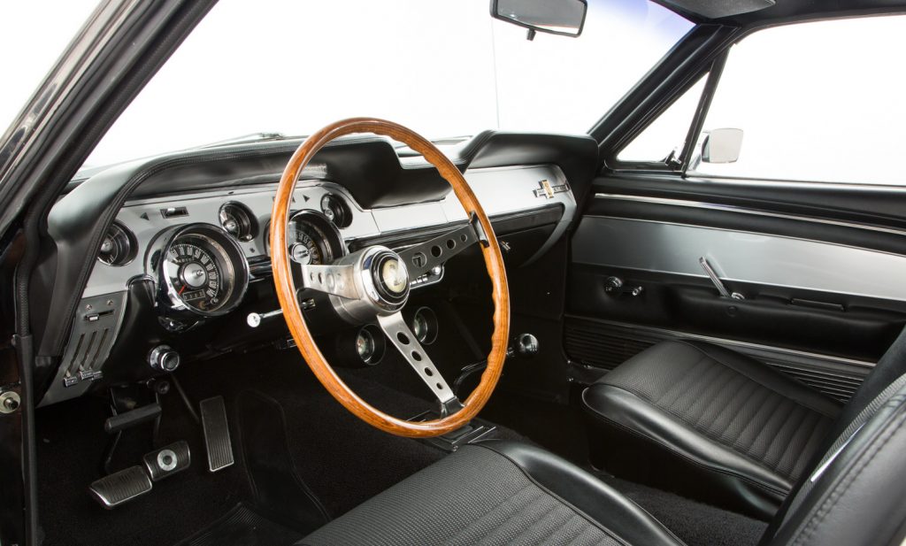The good news just keeps on coming when you head inside the Shelby Mustang GT500 from Fast Classics. It is in exceptional condition, with all of the materials of top quality and fantastically finished throughout. The steering wheel is constructed from wood and with a generous diameter which gives you the requisite heft to muscle this GT500 around. The seats are in top notch order, with the vinyl outer and cloth inner sections looking virtually new, as do the carpets so this really will be taking pride of place in some luxury car enthusiast’s collection.