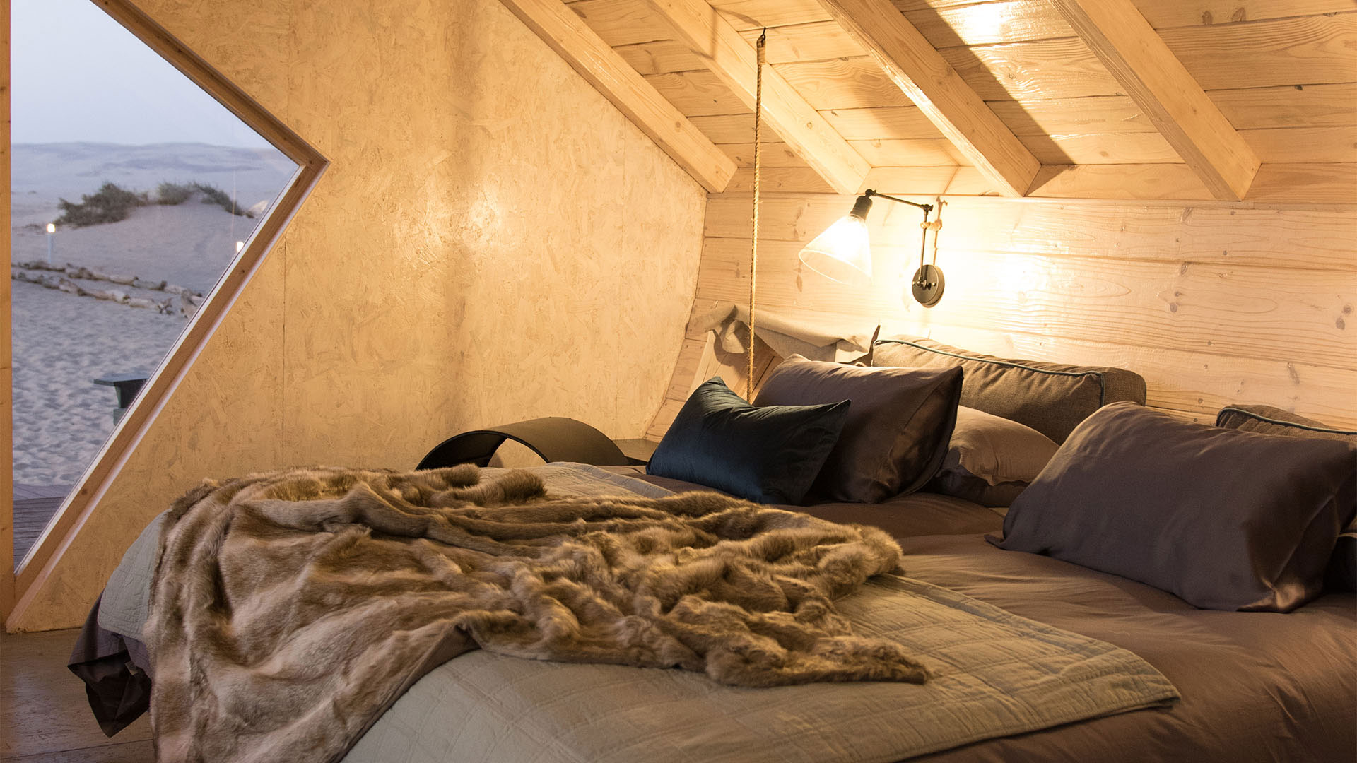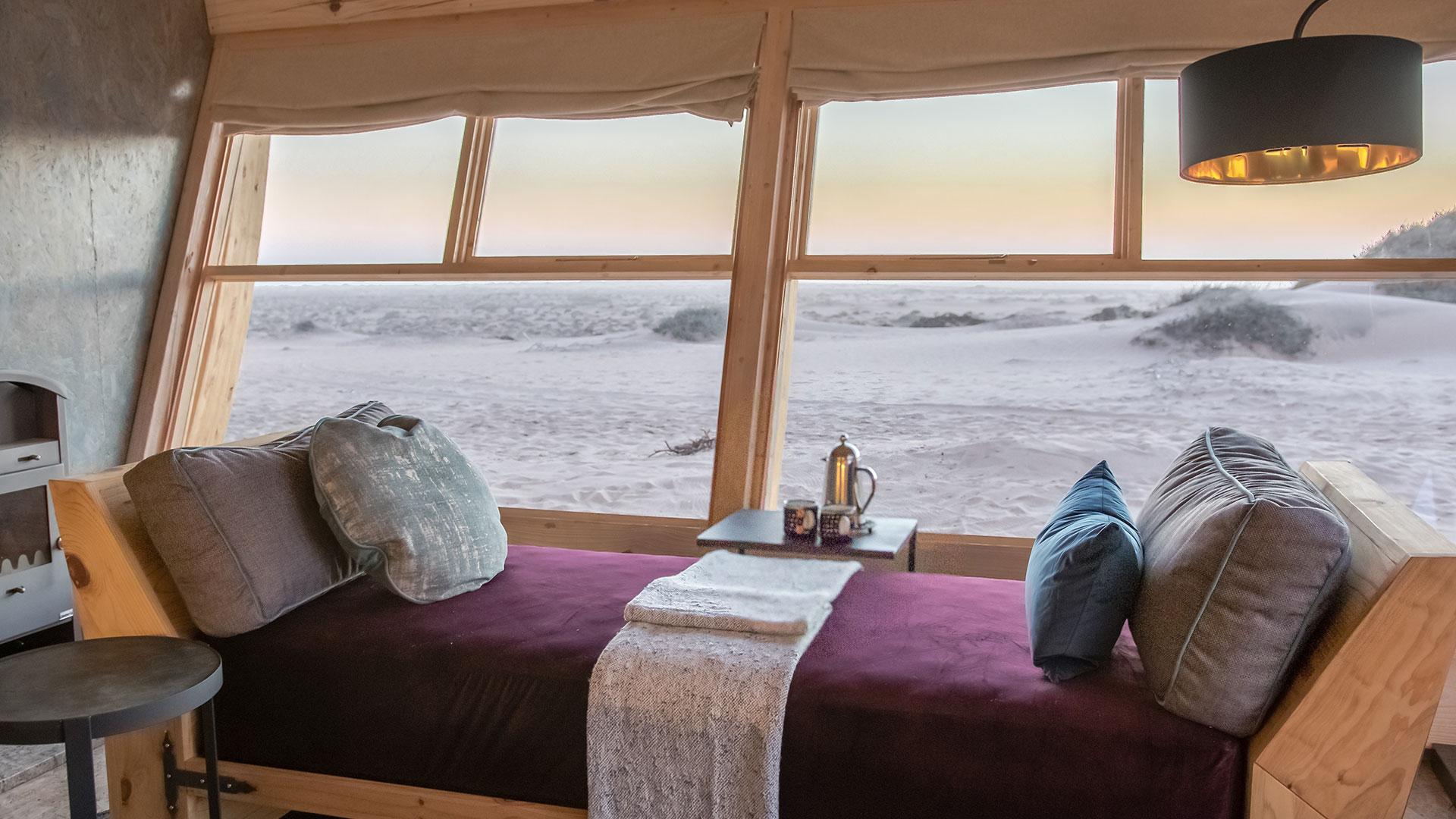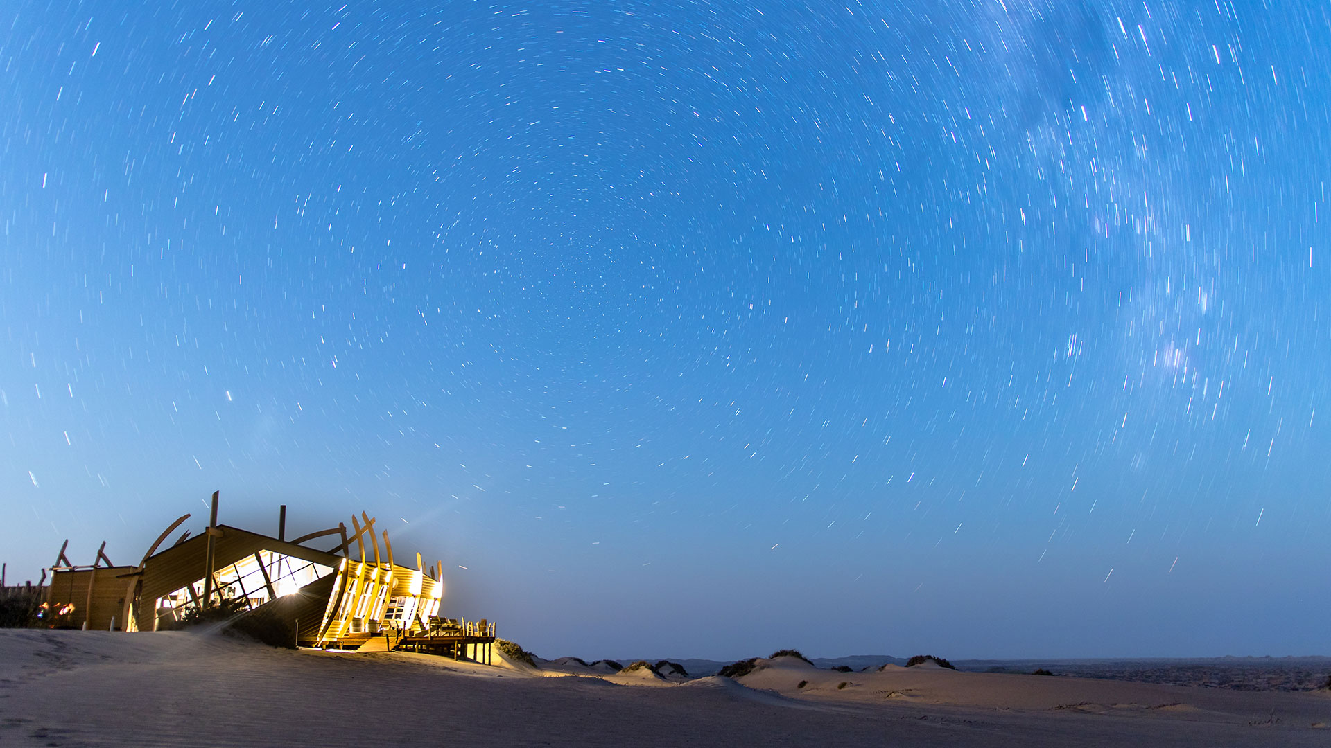 Shipwreck Lodge on Skeleton Coast in Namibia is located between the Hoarusib and Hoanib rivers in the Skeleton Coast National Park, and is just 45 km from Möwe Bay. These eye-catching and wonderfully made shipwreck-shaped chalets are placed carefully between the dunes and boast an extraordinary view of the Atlantic Ocean where the cold Benguela current provides guests with a refreshing breeze that will keep you cool in the desert setting.