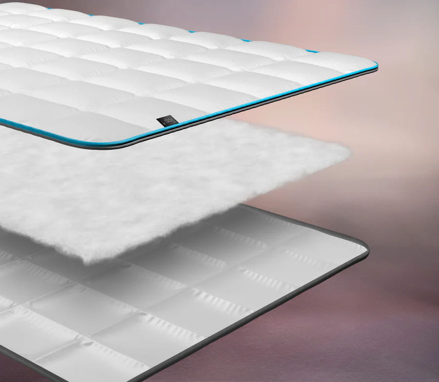 Working in perfect synergy with this innovative fill is the Stratos® ‘cool-touch’ technology, seamlessly integrated into the duvet’s underside. Drawing inspiration from the advanced temperature regulation systems used in spacecraft, this ‘duvet thermostat’ proactively manages heat. It delivers an immediate and palpable cooling sensation, actively dissipating excess warmth and tackling the common sleep disruptor of nighttime overheating.