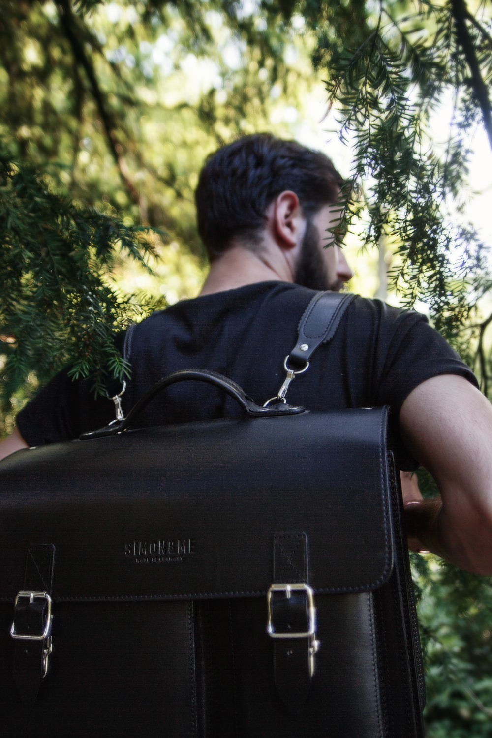 The beauty of this bag lies in its multi-functionality and it can be worn in three different ways i.e. as a normal bag via the hand-strap, as a rucksack or over a single shoulder with a strap. It is available in two different colours – black and dark brown – and its manufactured from genuine, naturally treated calf leather, is 100% German made and has an embossed Simon & Me across the front of the bag. Take a look at some more images of this cracking carry from Simon & Me below: