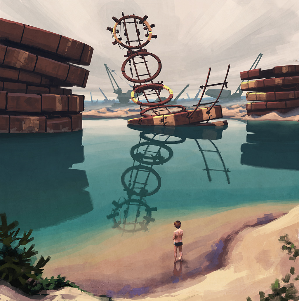 Not content with being incredible at painting, Stalenhag has also created a rather spiffing 16-bit game as part of his role as one half of Pixeltruss – the game is called Ripple Dot Zero and you can play it – HERE.