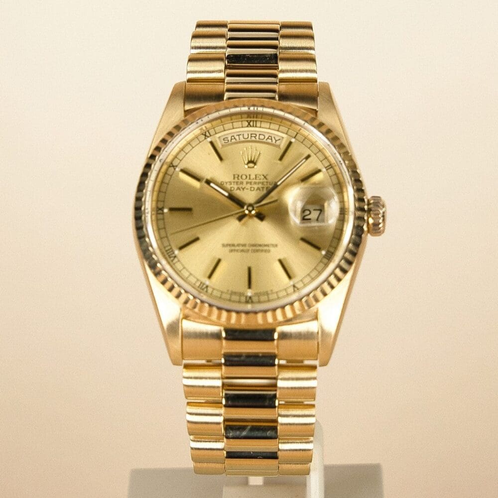 On the pre-owned market, older five-digit and vintage references such as the 18038 or 18238 represent outstanding value. These watches deliver everything that makes the Day-Date special: the iconic President bracelet, day and date apertures, and that unmistakable solid-gold presence — without the eye-watering cost of buying new.
