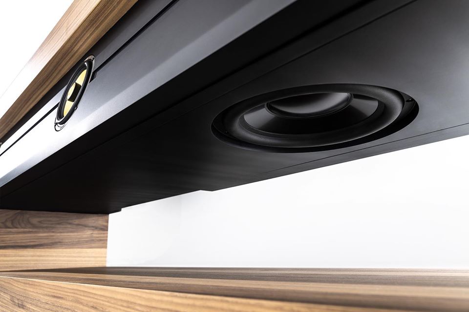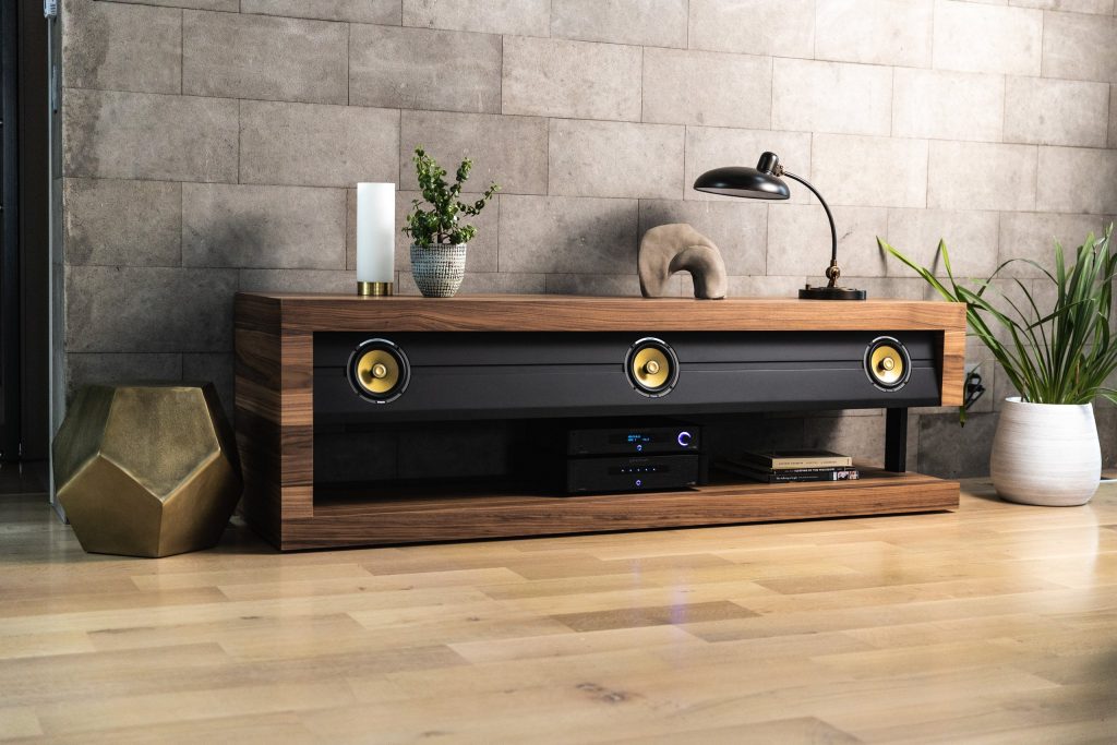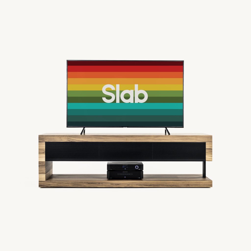 Truly built to last, the Slab Console™ is assembled by hand using the very best wood, aluminium, and composite materials on the market. These materials have been hand-selected and no two consoles will be the same as a result. The aluminium frame is backed by acoustically-transparent fabric and this expertly conceals the console’s audio prowess.