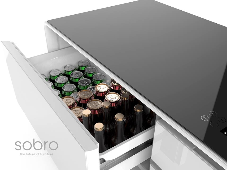 The ability to be able to grab a cold craft beer without heading to the kitchen is probably the biggest draw of this piece of furniture for us here at Coolector HQ but there will be plenty of others out there more wowed by the technological specifications it boasts. The Sobro Cooler Coffee Table really adds a touch of visual gravitas to the room with eye-catching LED lighting and the touch control interface lets you control the audio, lights and drawer temperature right from the tabletop – meaning there’s no app to download.