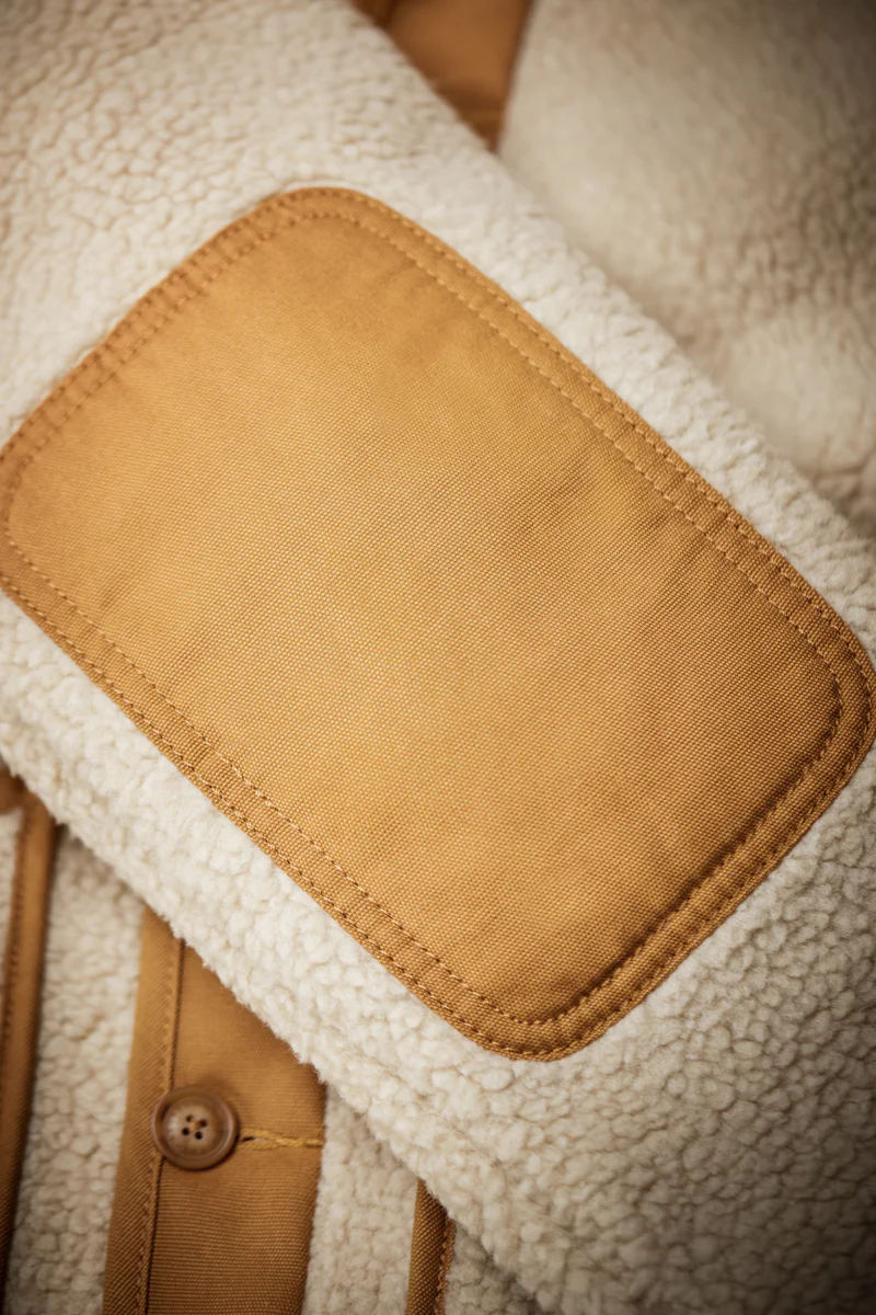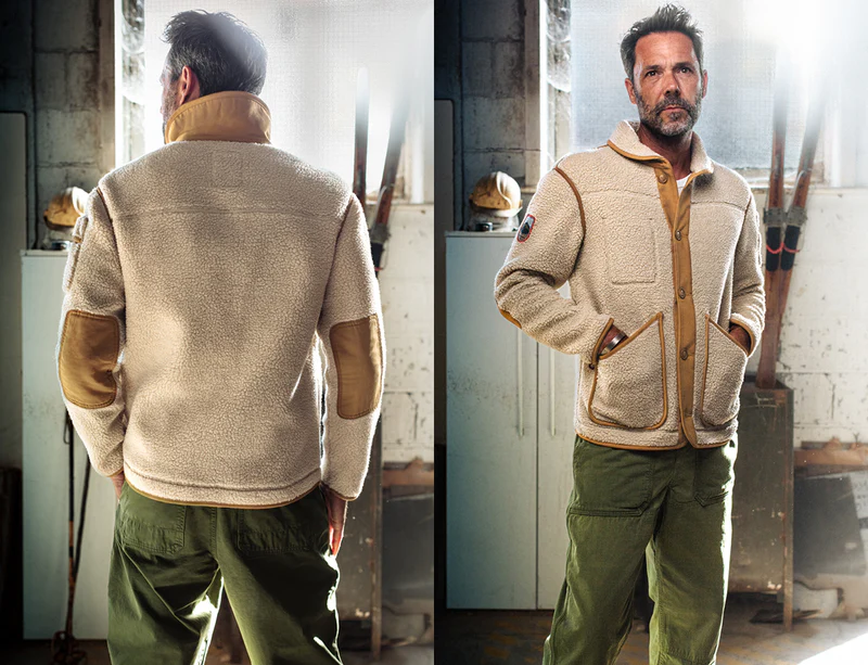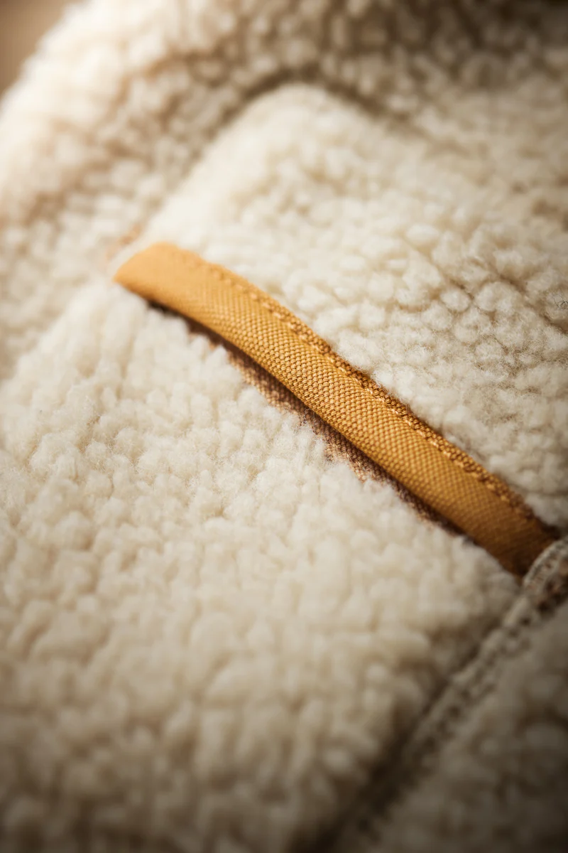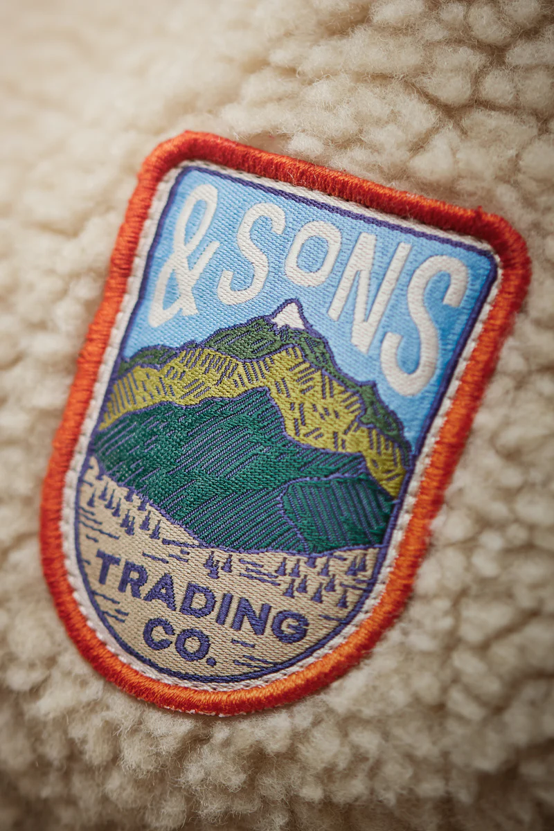 The Takin Fleece Jacket is crafted from 100% polyester borg fleece with a bonded double-layer construction, complete with an internal microfiber fleece for extra insulation. This combination ensures that the jacket provides exceptional warmth and comfort, making it ideal for braving the harshest conditions. Inspired by the resourcefulness of 70s mountaineers, &SONS added thoughtful details that elevate both the functionality and style of the piece. Recycled plastic buttons and para-cord loop details on the lower patch pockets add unique touches that pay homage to the improvisational spirit of early climbers.