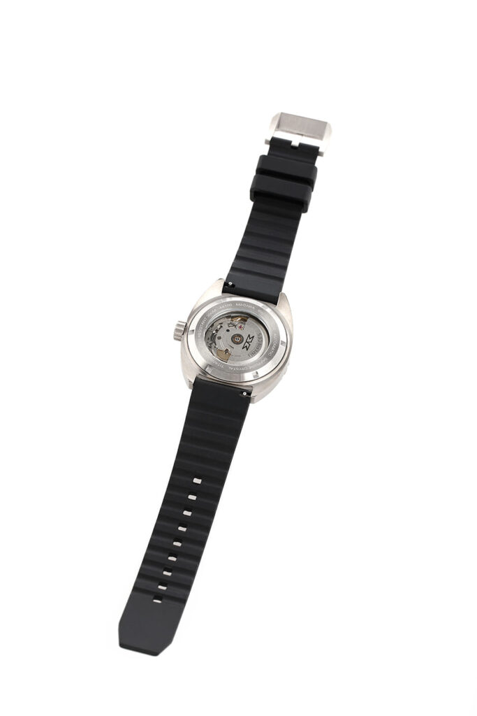 It’s a dynamic look that captures the sensation of motion even when stationary. Under the hood, the watch is powered by the Swiss-made Sellita SW200 automatic movement—a legendary workhorse known for its reliability and smooth sweeping seconds hand.