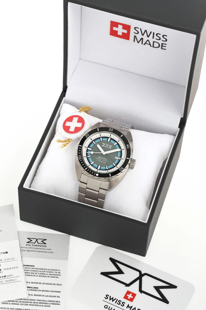 Priced at €2000 (for the rubber strap version – add €177 for the titanium strap), the STIL Titanium Megara is an invitation into an ultra-exclusive club. Limited to just 100 individually numbered pieces, it arrives in a bespoke collector’s box with two bracelet options: a sleek titanium link bracelet for an elevated, monochromatic look, or a sporty blue rubber strap that makes the turquoise accents on the dial pop.