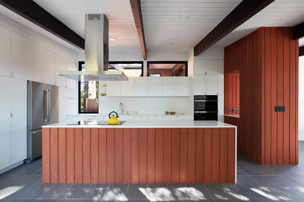 For the H-shaped house, the designers ended up reconfiguring the inside by clearing out walls to add 1,100 square feet (102 square metres) to the overall floor plan. The project also entailed converting a carport to an enclosed garage so it could be used as storage space. On the exterior, the team at Klopf Architecture replaced redwood siding and added more glazing to increase natural light throughout the home. In particular, windows were enlarged on the rear elevation to improve the interior’s connection to the landscape that surrounds it. Love Mid-Century modern? This is the home for you.
