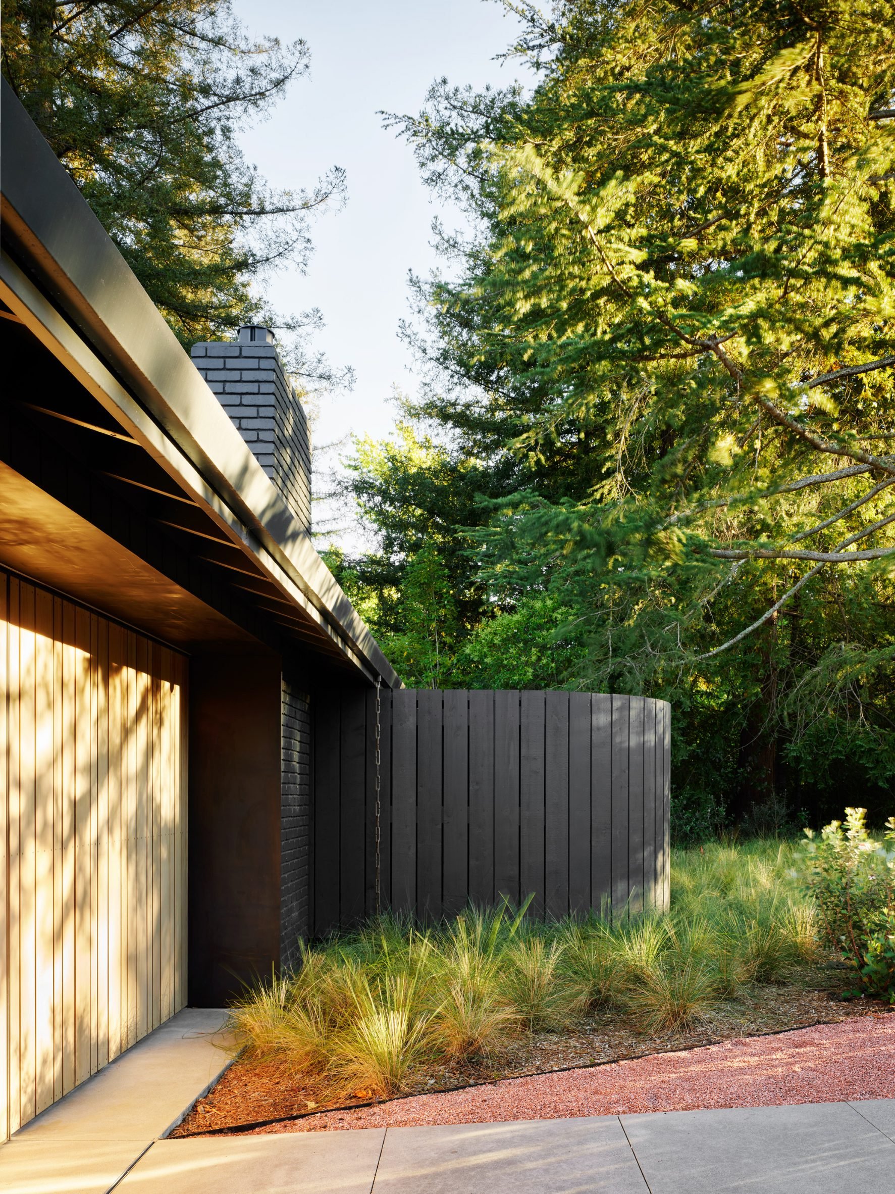 There is a pivoting front door that leads into a breezeway and toward the courtyard of Stanford Residence. Sliding glass doors along the courtyard are perfect for providing that much sought after indoor-outdoor connection. Communal areas – which comprise a kitchen, dining area and living room – are found in the middle and rear of the house, while bedrooms are located in the front and west side of this wonderfully designed and decorated home. A workshop and garage are located in a volume on the east. A great reimagining of an existing building from Jensen Architects.