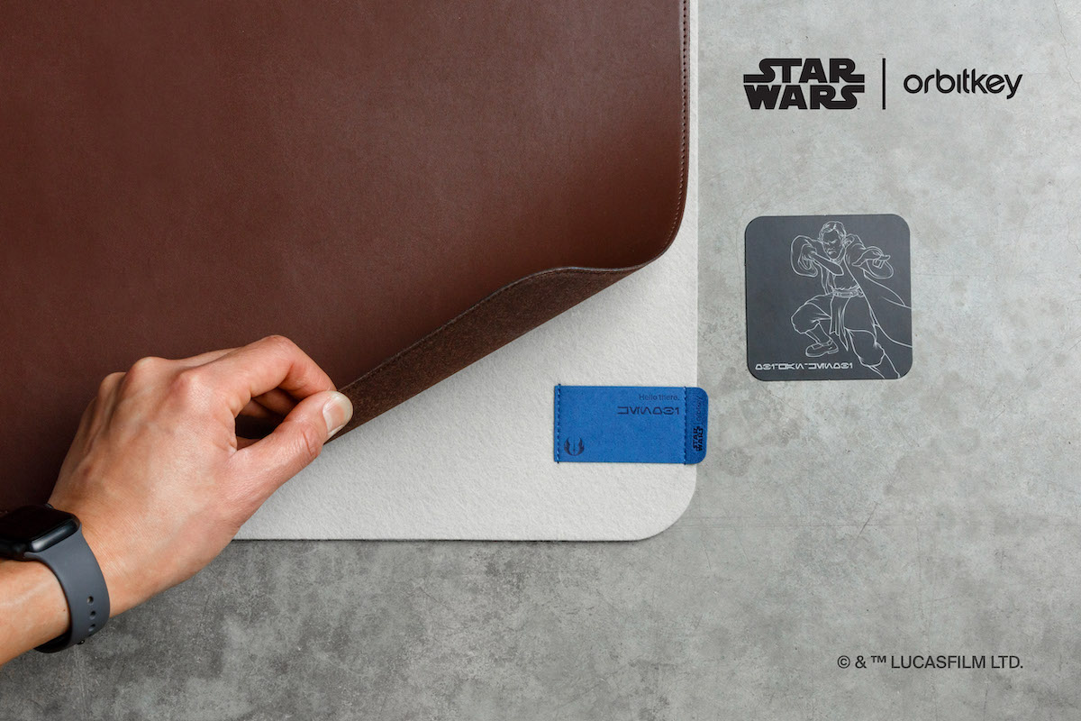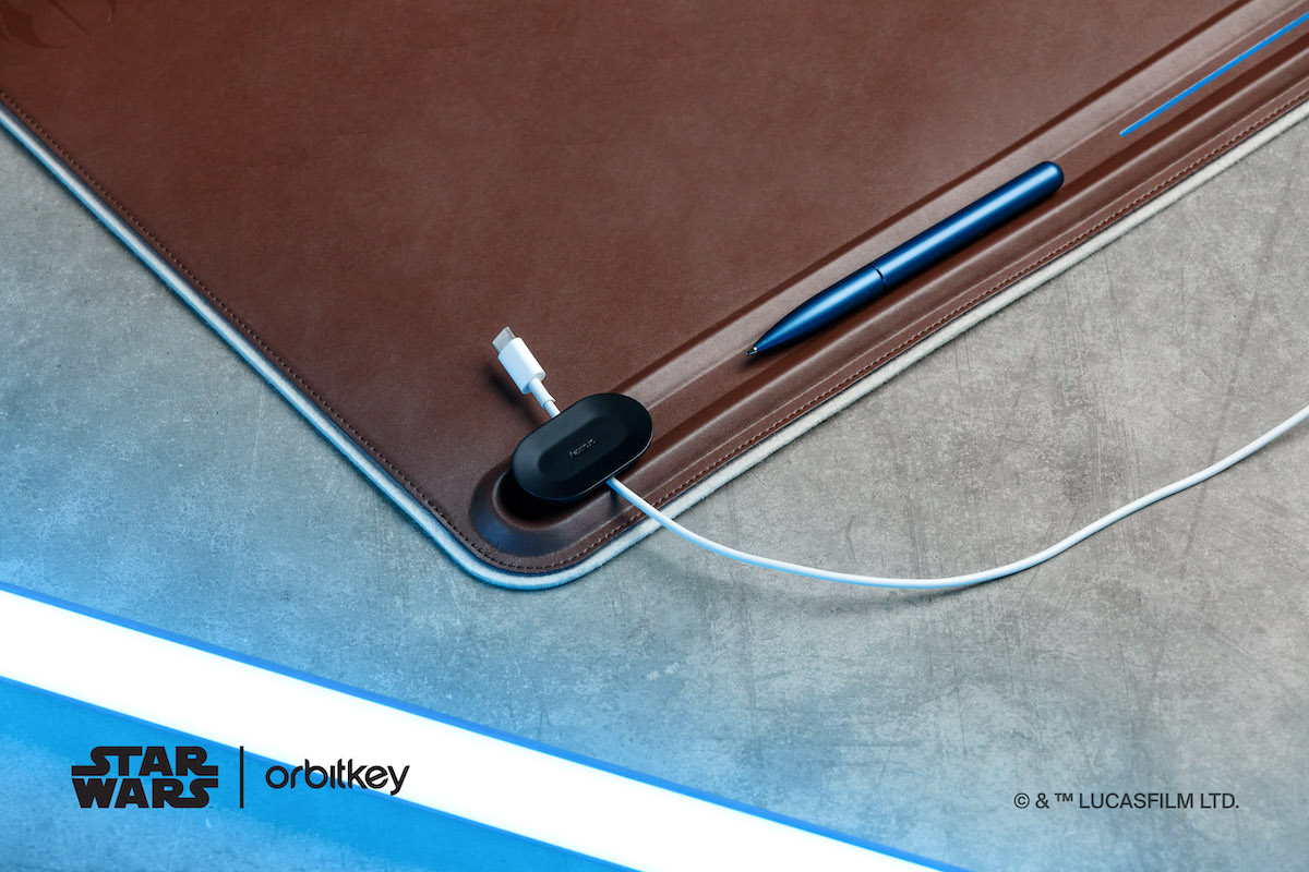 The Dark Side limited edition Desk Mat pays homage to the iconic stealth silhouette that is Darth Vader™, with an all black vegan leather surface. The matte black magnetic cable holder is inspired by his sleek armour, while a debossed red lightsaber motif within the toolbar references Vader’s™ ruthless weapon of choice against any enemies of the Empire. The Obi-Wan Kenobi version comes with a limited edition brown vegan leather finish inspired by Kenobi’s™ Jedi™ robes – complete with a taupe felt base, a matte black magnetic cable holder and a debossed blue lightsaber motif within the toolbar that alludes to the light. Add a touch of Star Wars™ awesomeness to your workspace this fall.