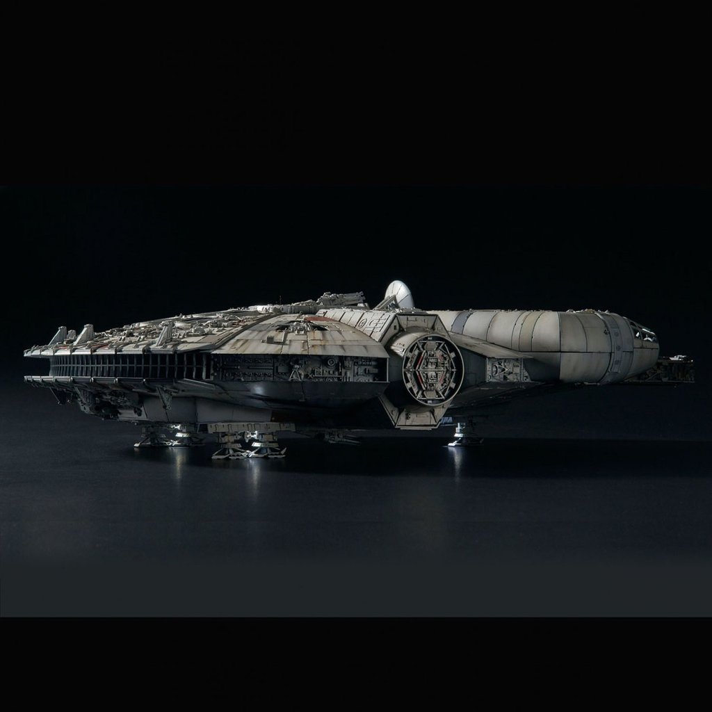 The Star Wars PG 1/72 Millennium Falcon has been crafted with total accuracy in mind and the kit is noticeably based on thorough research of the 67-inch studio model which was used during the filming of A New Hope back in 1977. Each one of these Premium Grade models from Bandai boasts a large amount of detail faithful to the original such as the cockpit and laser cannons and no short-cuts were taken in the creation of this fantastic bit of kit.