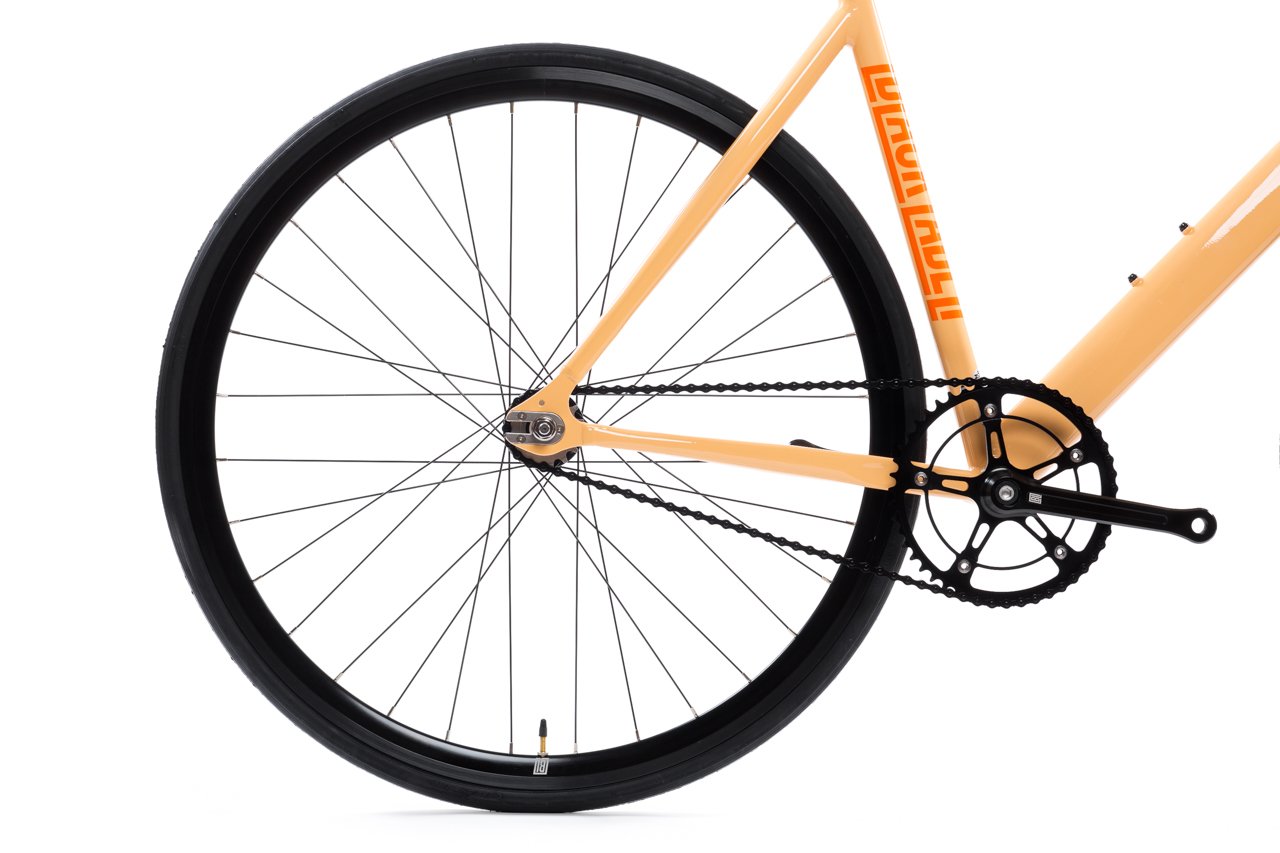 State Bicycle Co are dedicated to offering the finest bicycles for the best prices and it’s always amazing to see the calibre of components they use at the price point they offer. The State Bicycle Co 6061 Black Label V2 Bike in Peach has a double butted, TIG-Welded 6061 Aluminium frame with tapered head tube, a flip-flop hub which means you can ride it as a fixed gear or single speed and a Premium Aerodynamic Race Saddle.