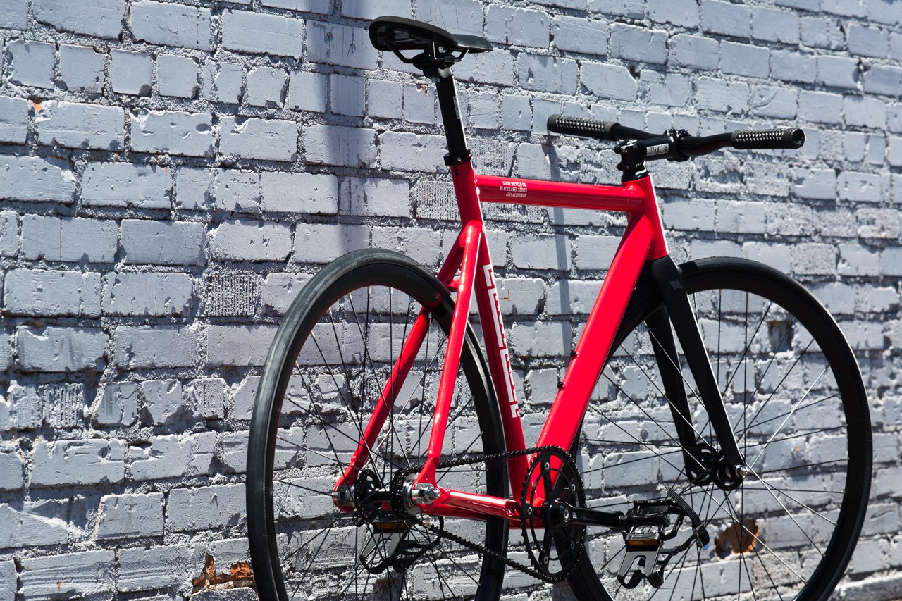 The full build of the State Bicycle Co Candy Apple Red Bike ($650) delivers a lightweight wheelset with sealed bearing hubs and finishes with a fully CNC’d Track Crank & 48t Chain Ring with a versatile 144BCD, which allows riders of Black Label to mix and match their crank with top aftermarket chainrings. The build comes with a handlebar option of either compact drop bars or wide mountain-style riser bar and a flip-flop hub that makes it simple to switch between fixed gear and single speed variations.