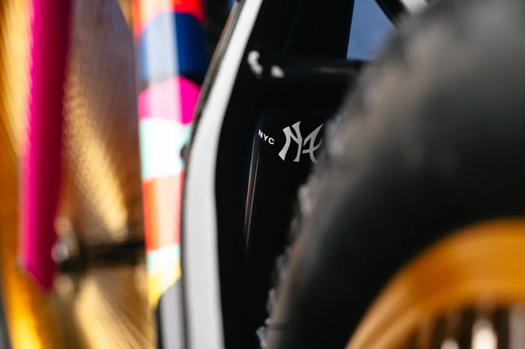The first thing you’ll notice about this beauty is its bold tribute to RTJ’s iconic album art, featuring gold 144-spoke wheels that command attention on any street. State Bicycle Co. has created a frame that’s both durable and eye-catching, finished off with a BMX-style V-bar featuring a 7-inch rise and custom RTJ grips. The handlebars are extra-wide at 30 inches, offering that laid-back, confident feel that’s perfect for cruising the neighbourhood or simply showing off your impeccable taste in bikes.