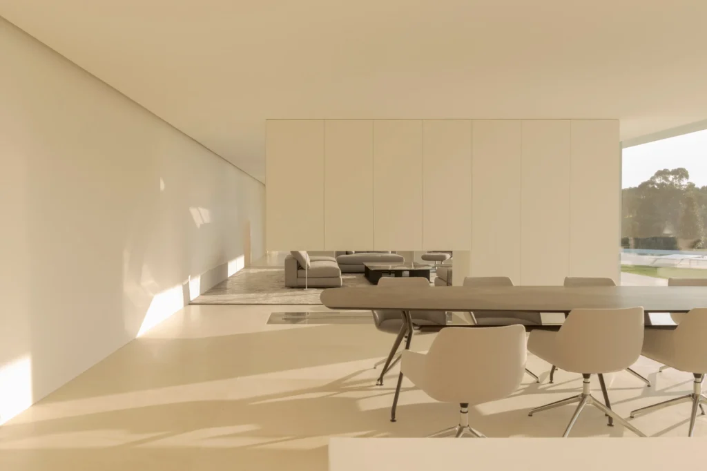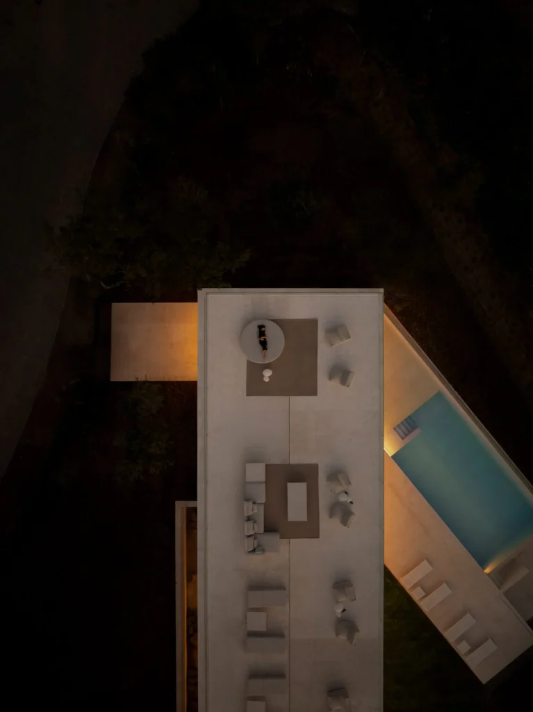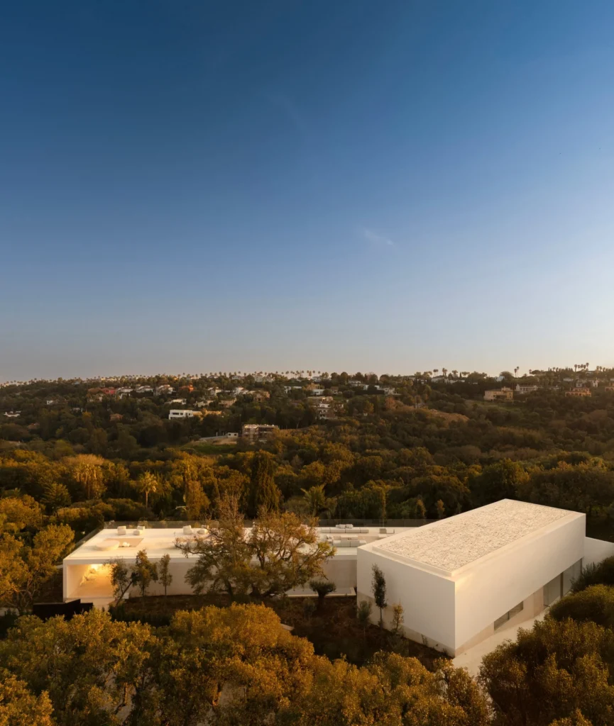 The villa is finished on the exterior in pale stone cladding on the zigzagging volumes, a material choice that visually integrates the house with the natural landscape and references the local terrain. Interiors are largely minimal and white, creating a clean, timeless backdrop that allows the views and the architecture itself to take centre stage. The overall design was conceived to be “timeless” and flexible, specifically allowing for the possibility of housing multiple generations in the future – adding a layer of thoughtful longevity and adaptability to the minimalist aesthetic.