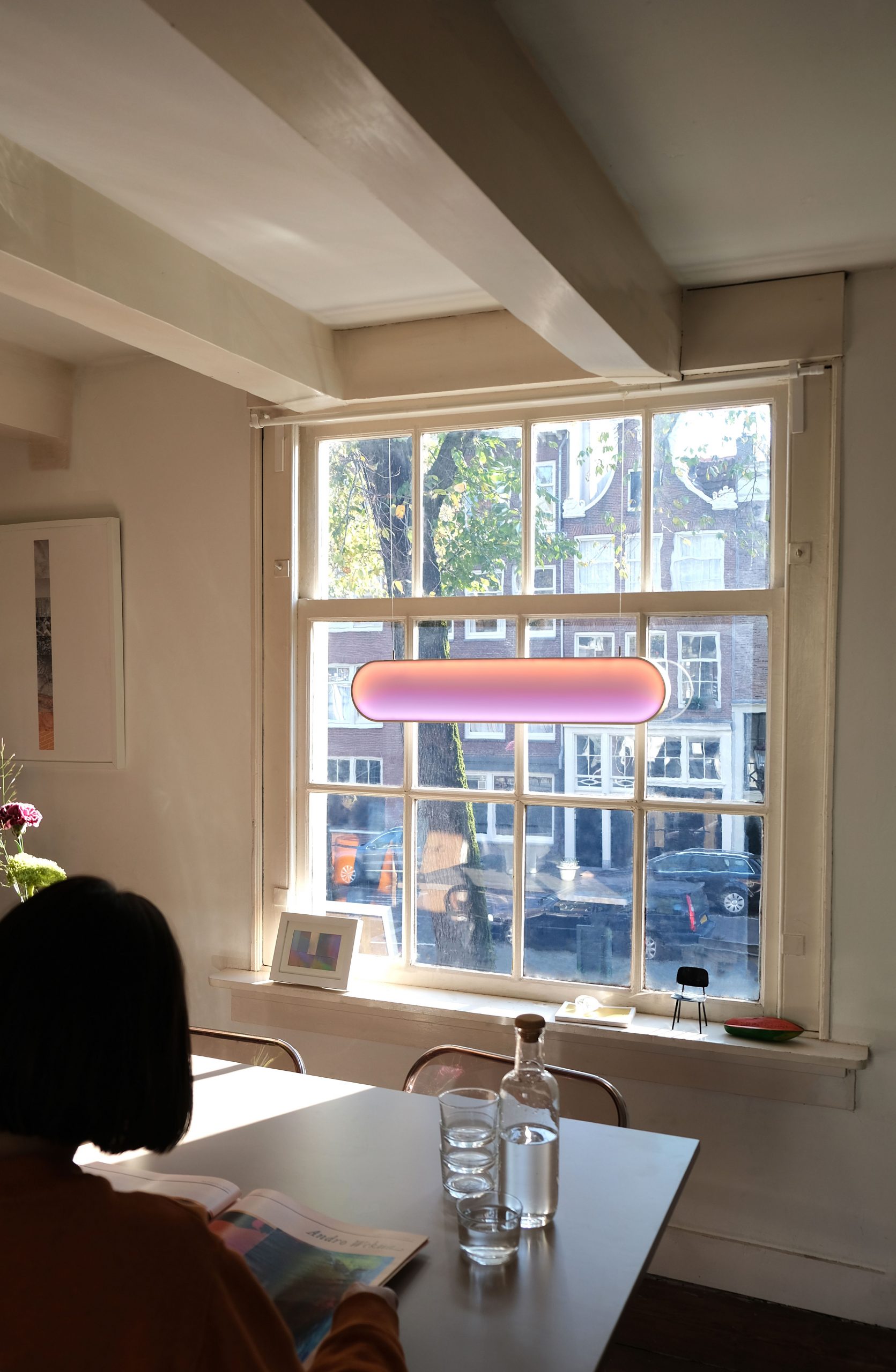 Sunne is an ambient light, measuring 85 cm in length, which hangs in front of your window by two steel wires through a simple and secure hanging system. There is no external plug required, something which makes this ideally suited to those homeowners endeavouring to cultivate an understated interior design aesthetic.