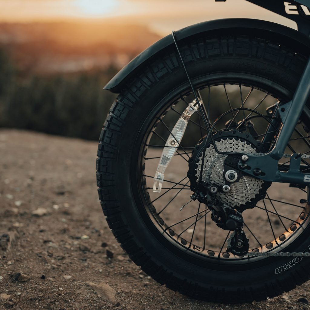 This awesome bike accelerates smoothly to a top speed of 20 mph with pedal assist. It can reach speeds up to 28 miles per hour on private property away from public roads and you can actually get an estimated 75 miles of range using ECO pedal assist mode. It boasts a fully adjustable air spring suspension fork which delivers a comfortable ride, even on bumpy roads and the 5-inch wide BDGR tires are the widest and most aggressive all-terrain tires in their class.
