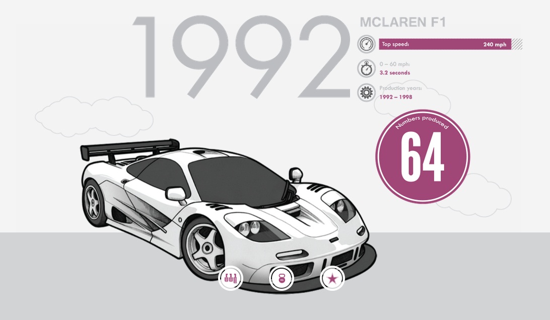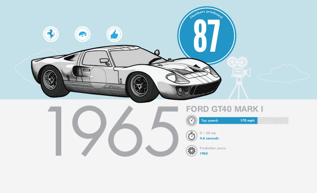 Showcasing some of the most famous supercars to have emerged through history, such as the Ford GT40 MKI and the McLaren F1, this visually engaging interactive infographic does a great job of showcasing the merits of each of these exemplary vehicles and unveils their traits in the sort of Top Trumps-esque manner that we here at The Coolector are big fans of. Check out a few more images from the infographic below (but to really experience it as it was designed to be seen, check out the link to the dynamic version after the jump):