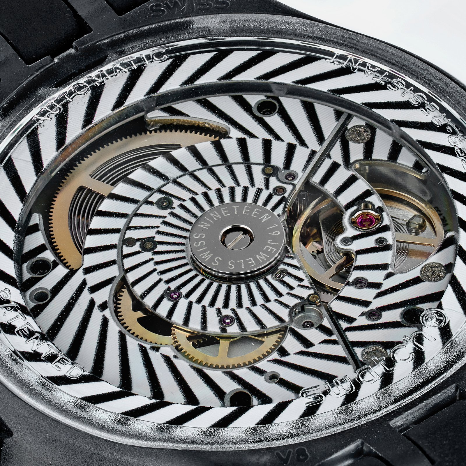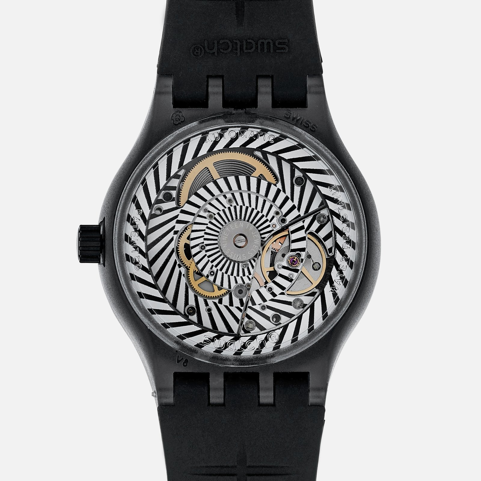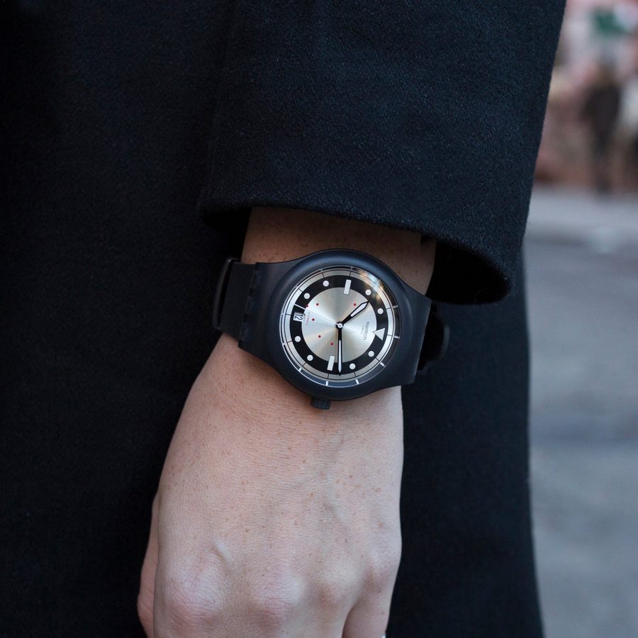 With an eye-catching, transparent case back, that lets you see the Sistem51 movement at work, the Swatch Sistem51 HODINKEE Vintage 84 consists of a mere 51 components and it is put together almost entirely by machine. The bold black and white pattern changes as the winding rotor spins, charging up the 90-hour power reserve and it is quite mesmerising watching this top notch timepiece in action.