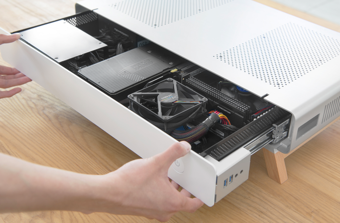 If, like us here at Coolector HQ, you invariably struggle to keep your workspace looking neat and ordered, you’ll likely welcome an understated looking, uncomplicated desktop computer and the TAKU Monitor Stand PC Case is the perfect means by which to achieve this uncluttered workspace. It works through offering an internal system tray that can simply be taken out of the whole chassis and thereby allowing for the straightforward installation of and access to the various different components of the PC.