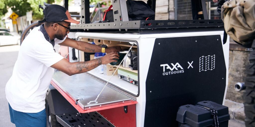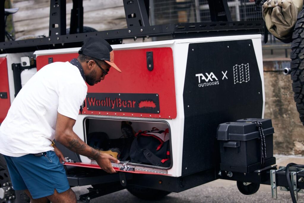 The guys at TAXA Outdoors and Topo Designs collectively believe in modern utility, inclusivity and sustainability. They both build wares that enable you to continuously redefine what the outdoors means to you. Ones that encourage you to expand your rhythms of life, soak up all that outside has to offer, and work effortlessly well while keeping the footprints small. Whether that’s taking a ride through town or heading out to the remote wilderness, both Topo Designs and TAXA Outdoors are here to inspire you to experience the outdoors the way you want. This shines through on this fantastic looking Woolly Bear Trailer collaboration.