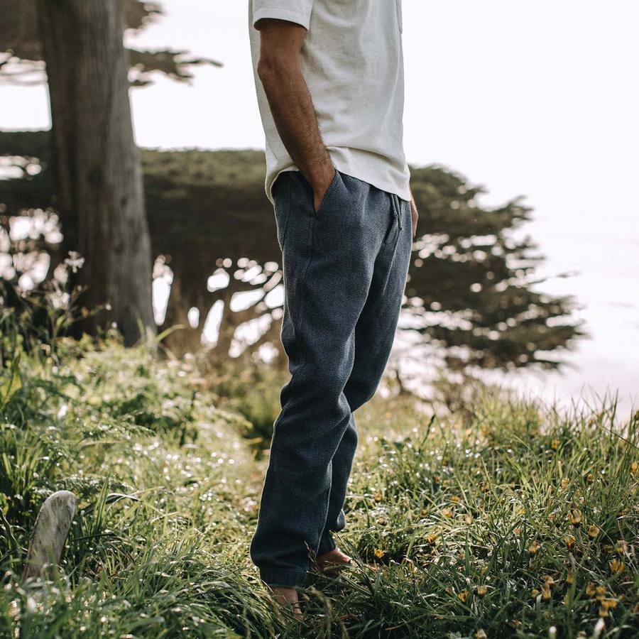 Taylor Stitch have really taken a shine to the unparalleled look and feel of a well-done waffle weave and this is something that shines through in these great looking Après Pant in Charcoal Waffle. This mid-weight, 100% organic cotton has been lightly washed, which enhances its textural depth and gives it a degree of softness that can only be rivalled by those sweatpants in the back of your closet you haven’t worn since college.