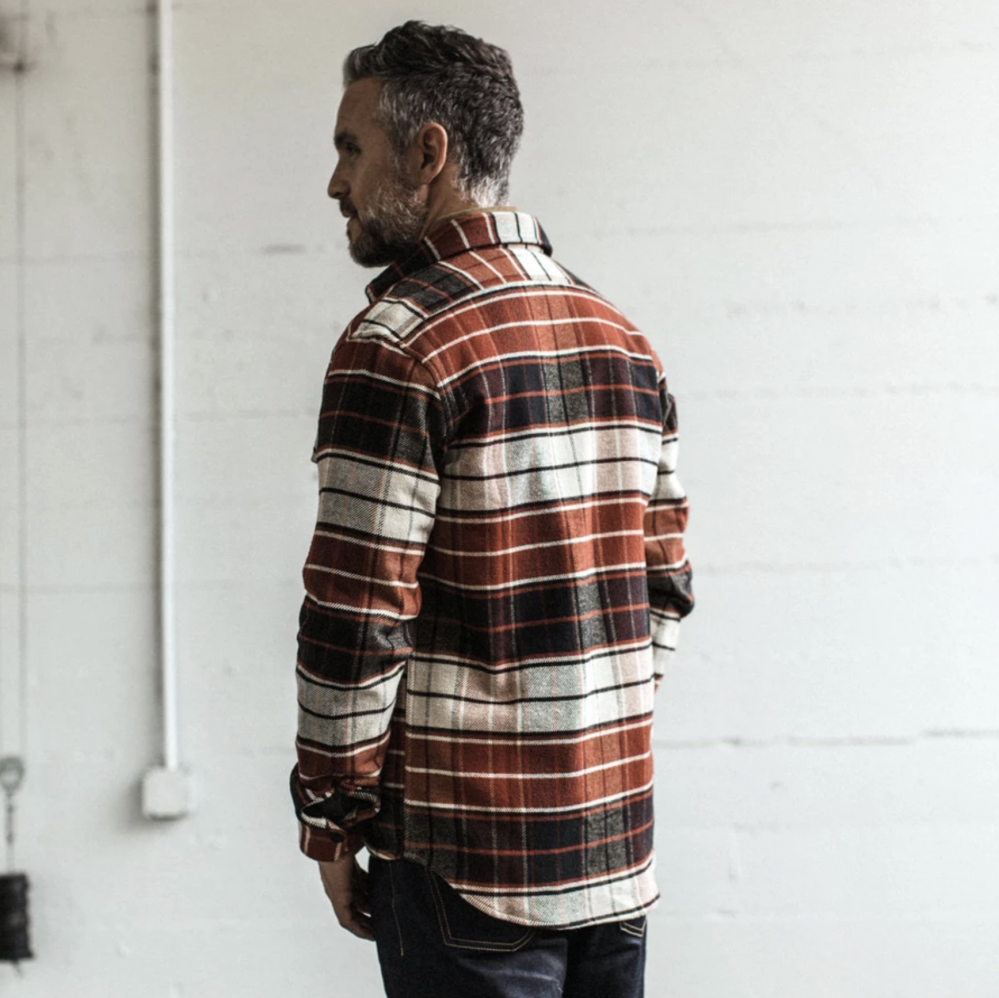 This 9-oz brushed flannel shirt was custom developed for Taylor Stitch using 100% organic cotton which is the sort of material that you can really feel the difference with and you’ll be loving just how much comfort it delivers. All of The Crater Shirt’s no-nonsense features return, including distinct styles for each chest pocket, classy cat eye buttons, and the brand’s much loved, versatile California collar. Leave an impression wherever you go with this beautiful, eye-catching Rust Plaid or Navy Plaid colour way.